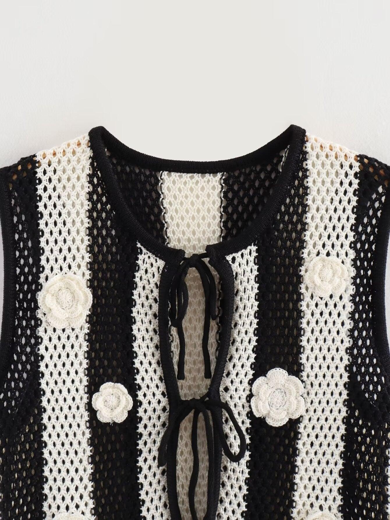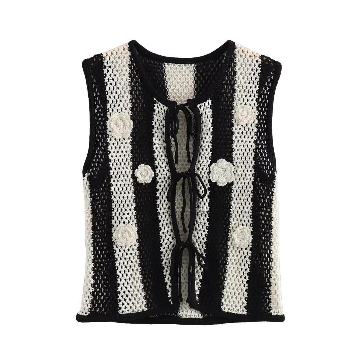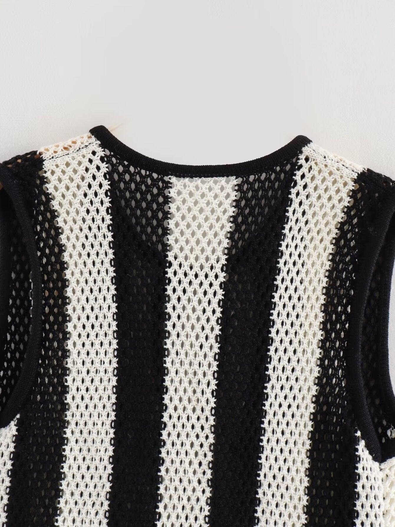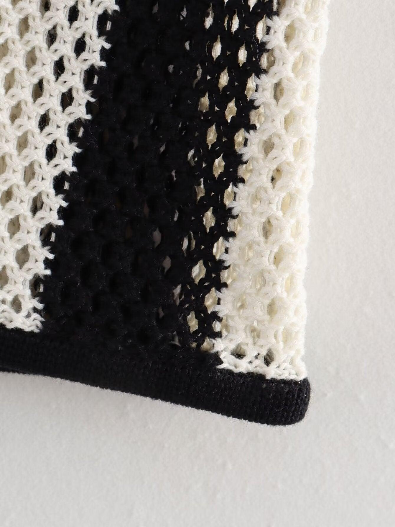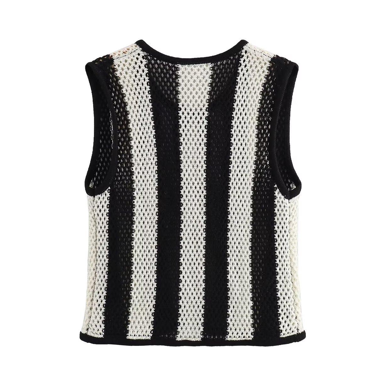 Ladies Contrast Color Round Neck Sweater Vest SKT4677