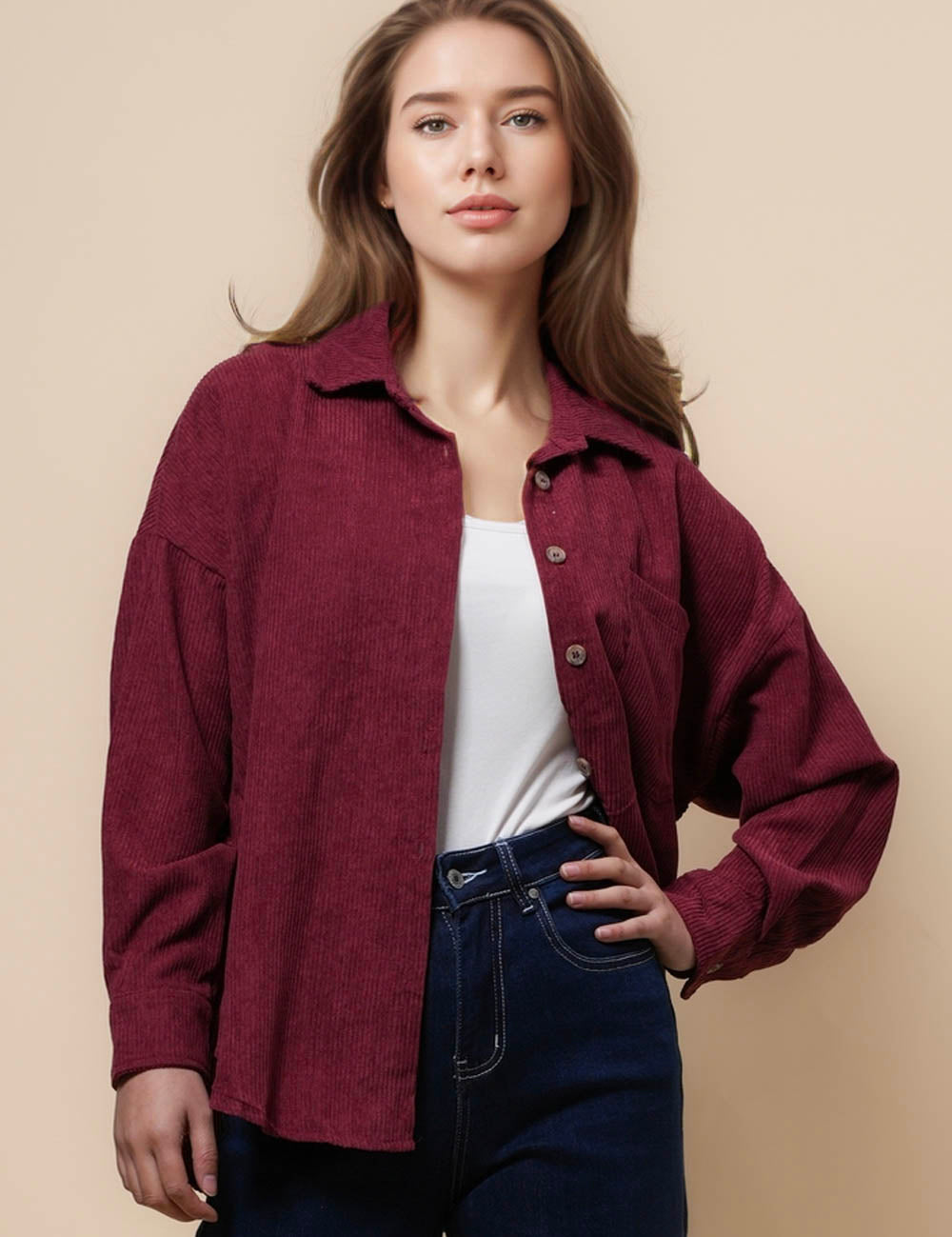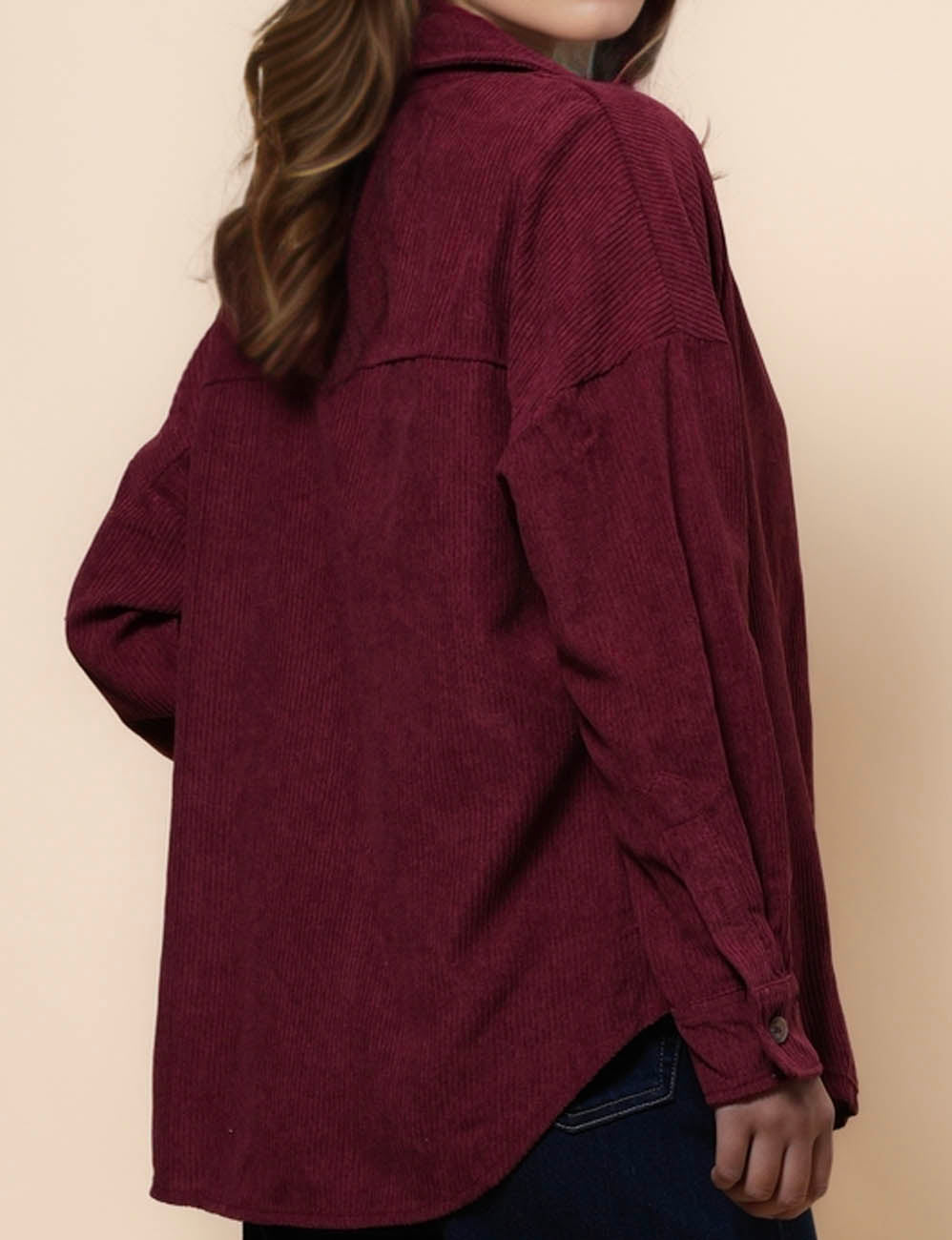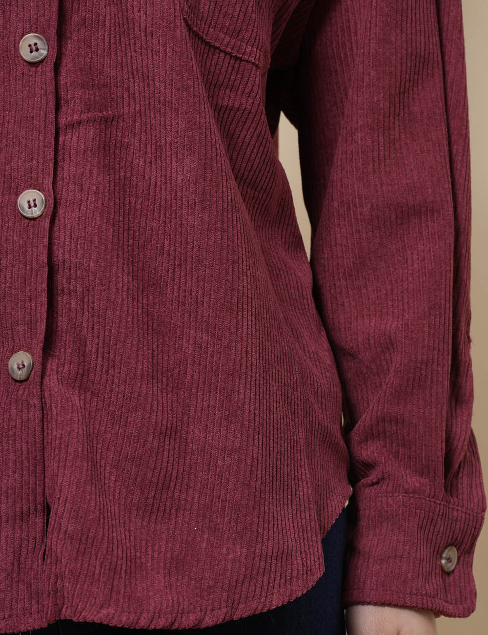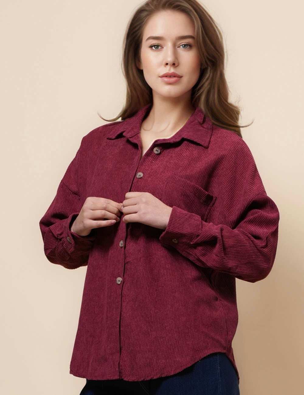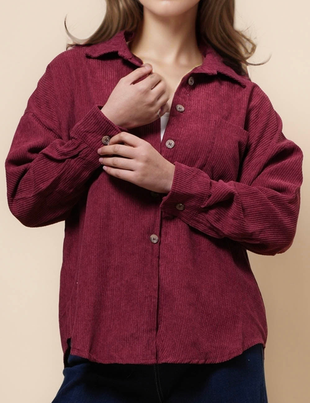 Ladies Corduroy Rib Turndown Collar Shirt SKT41151