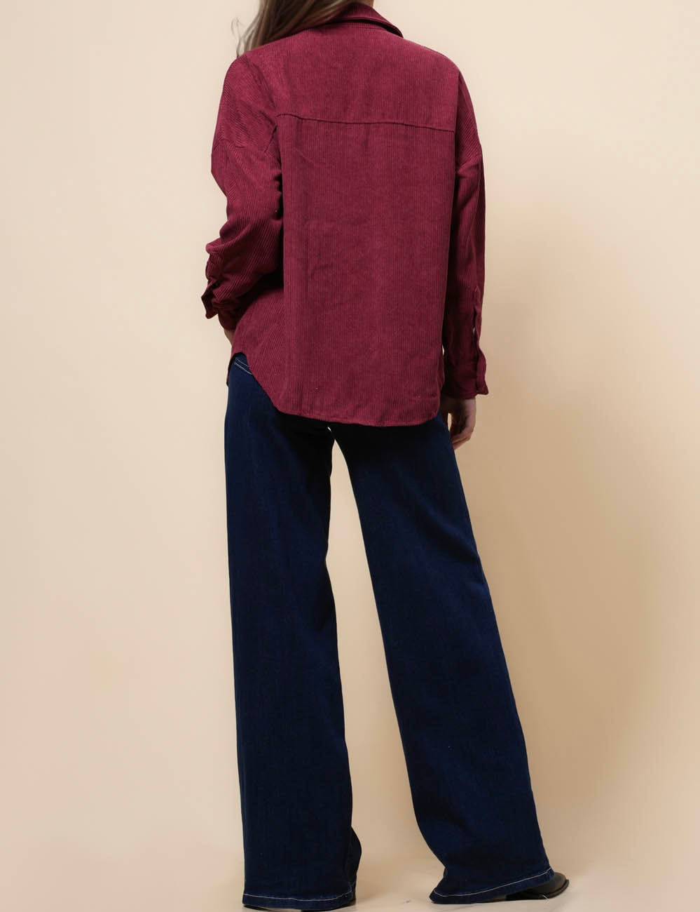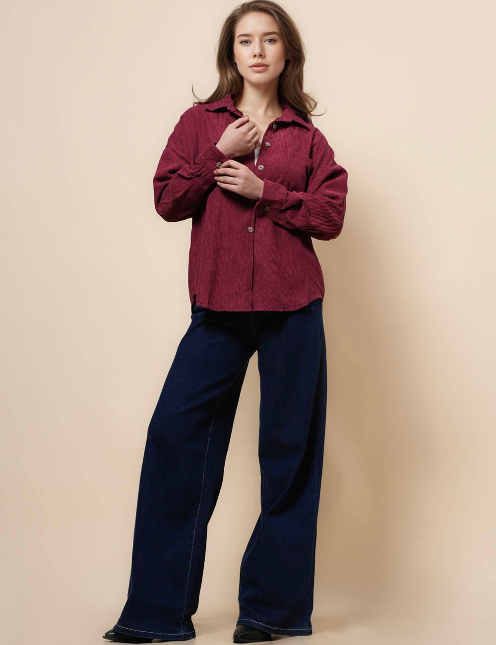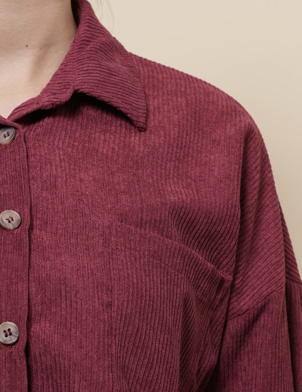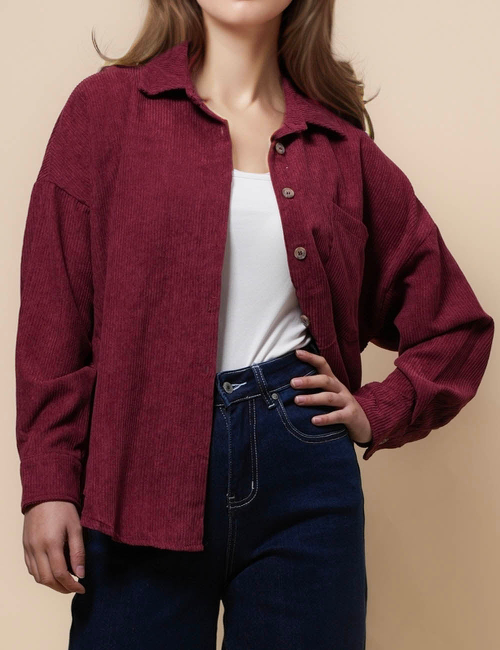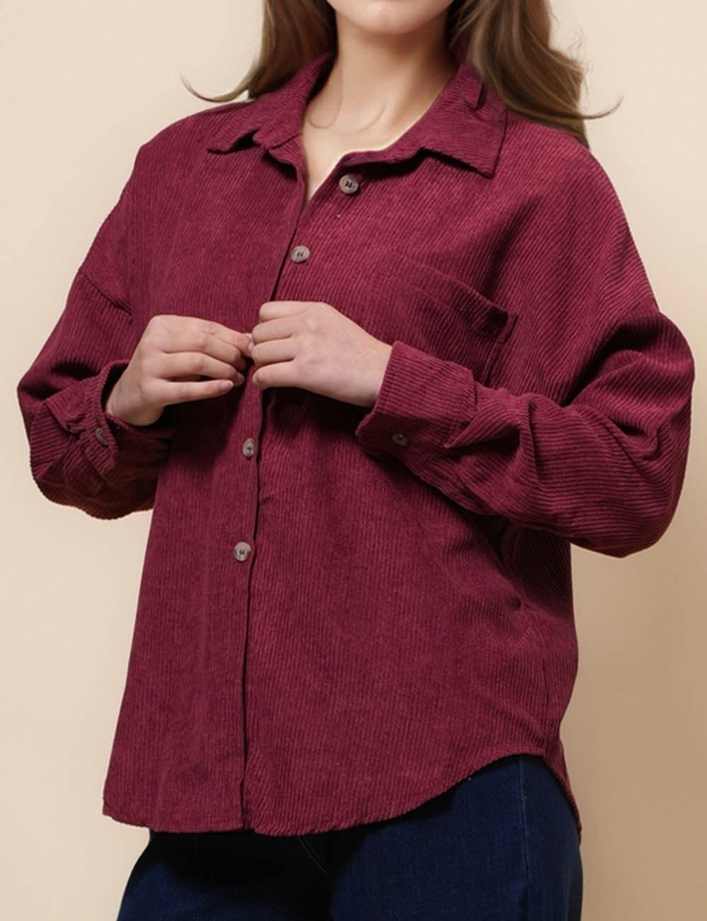 Ladies Corduroy Rib Turndown Collar Shirt SKT41151