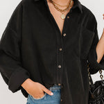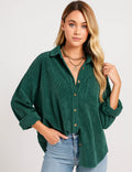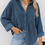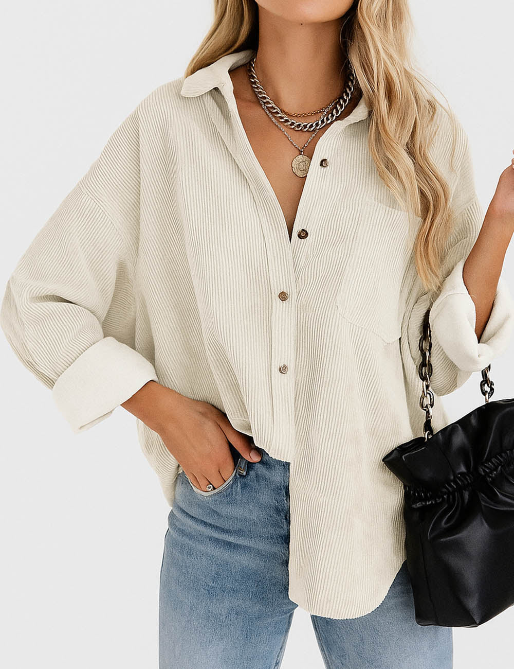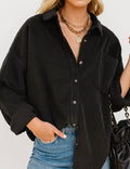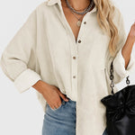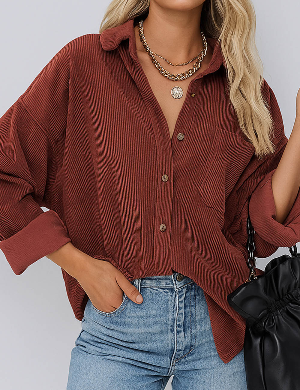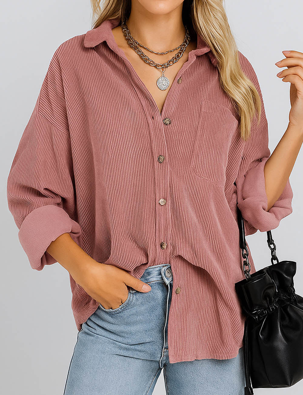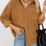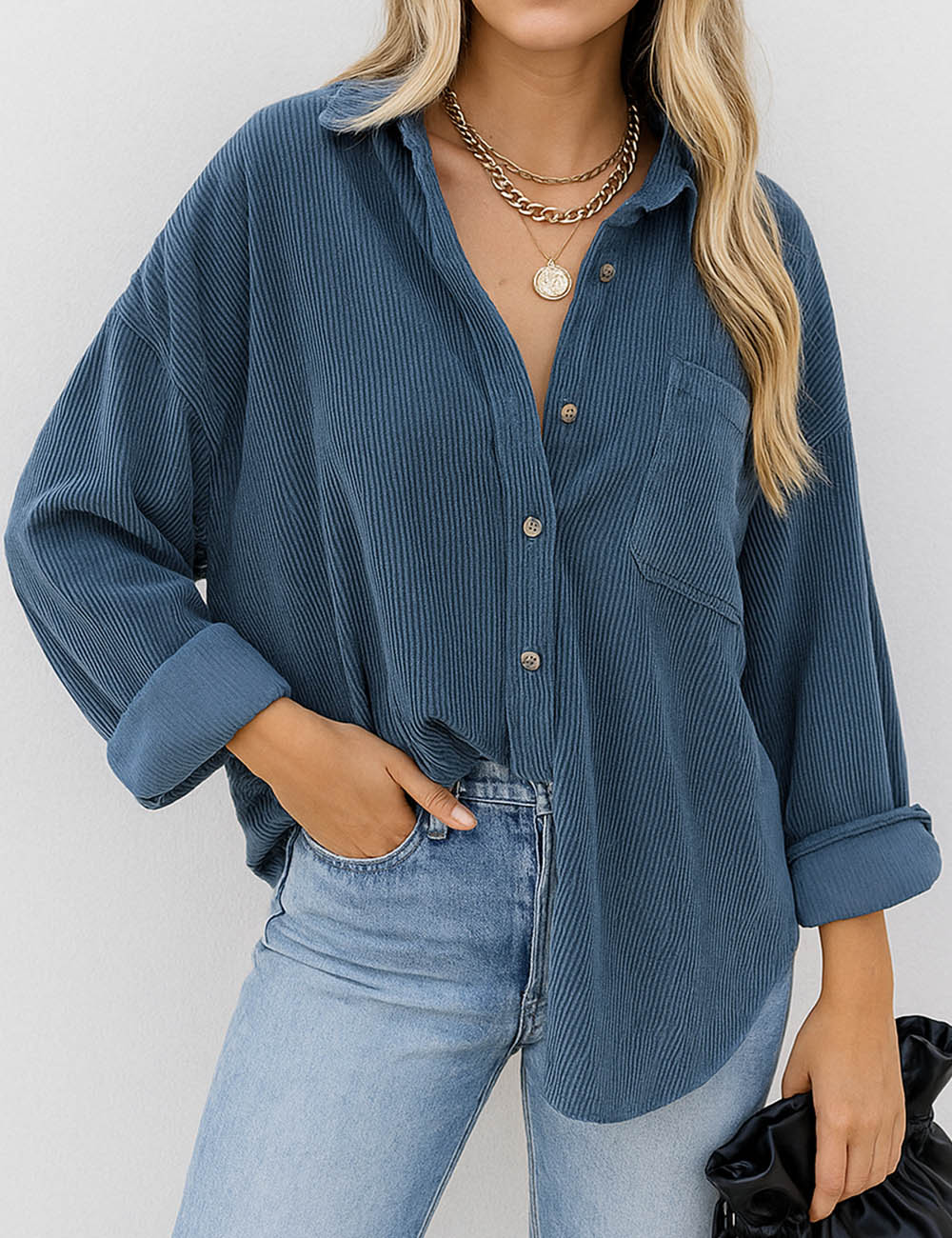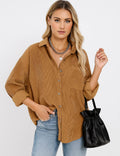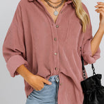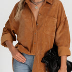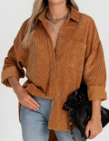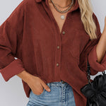 Ladies Corduroy Turn Down Collar Long Sleeves Shirt