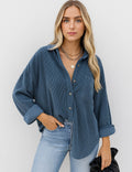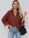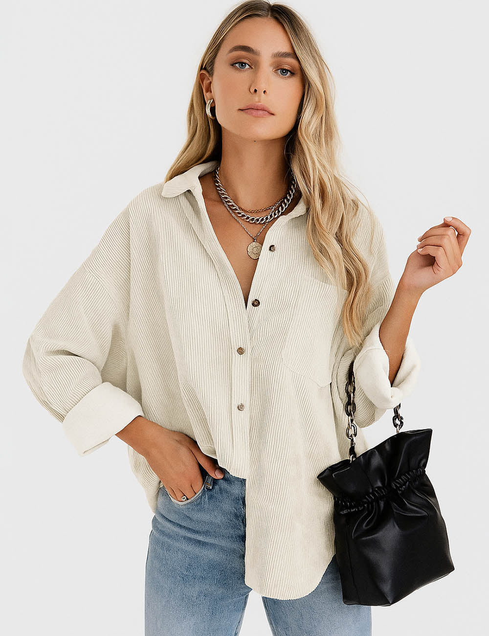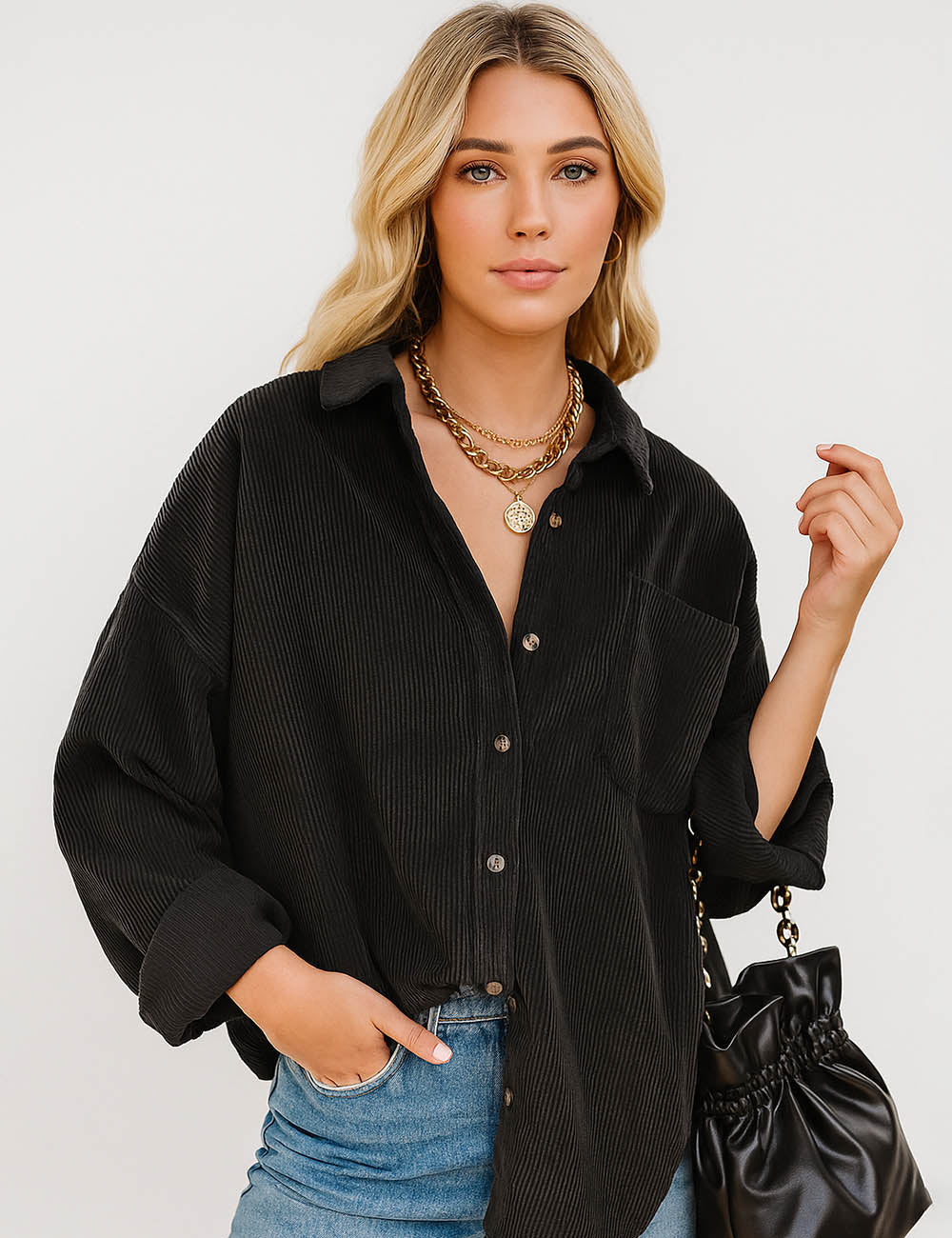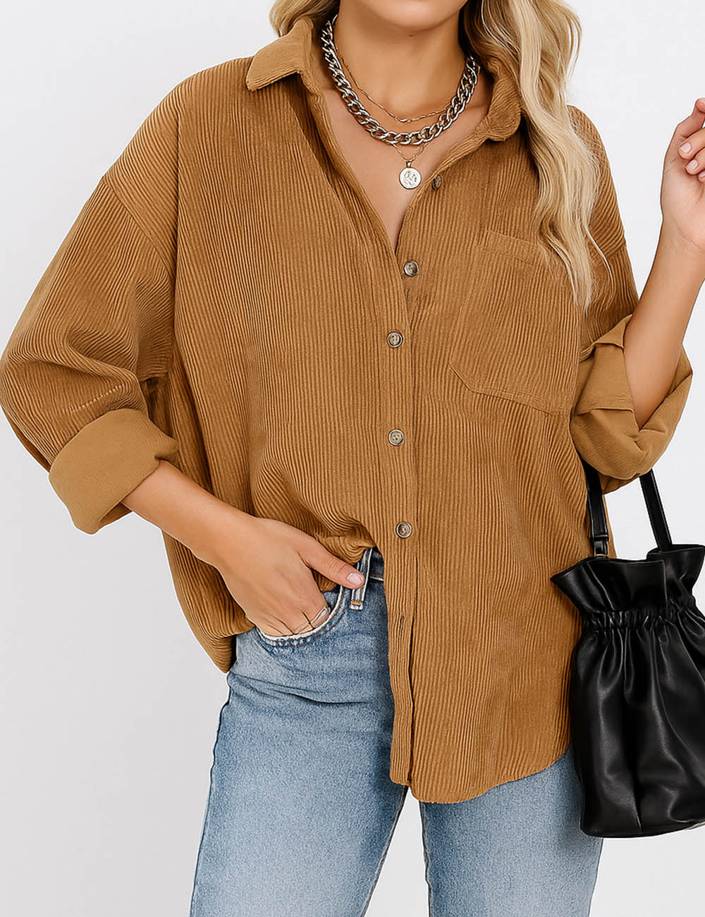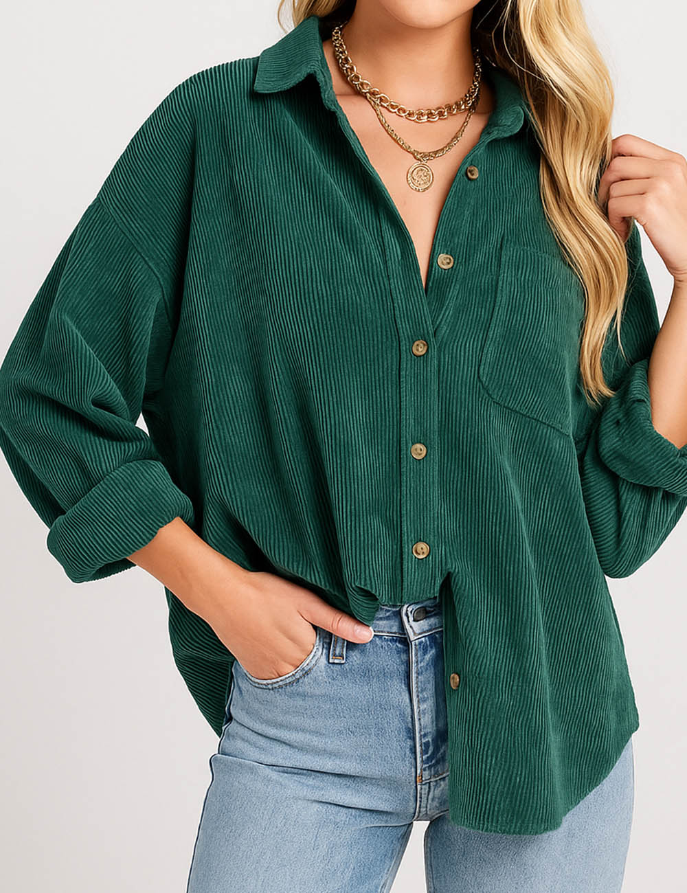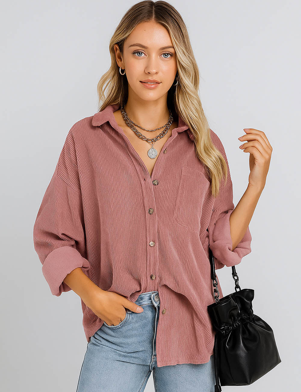 Ladies Corduroy Turn Down Collar Long Sleeves Shirt