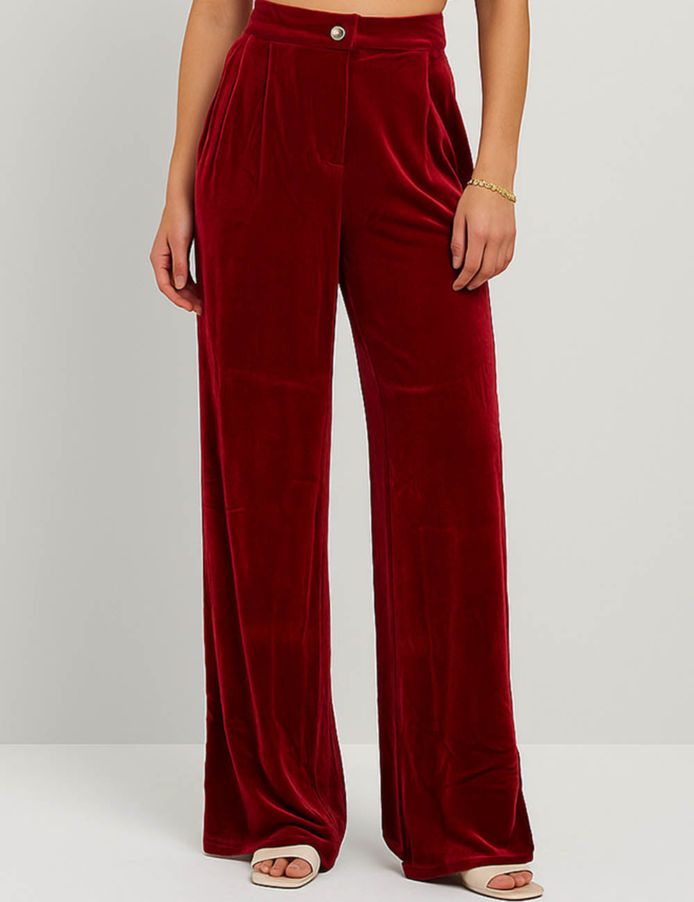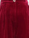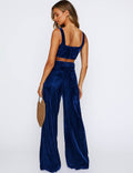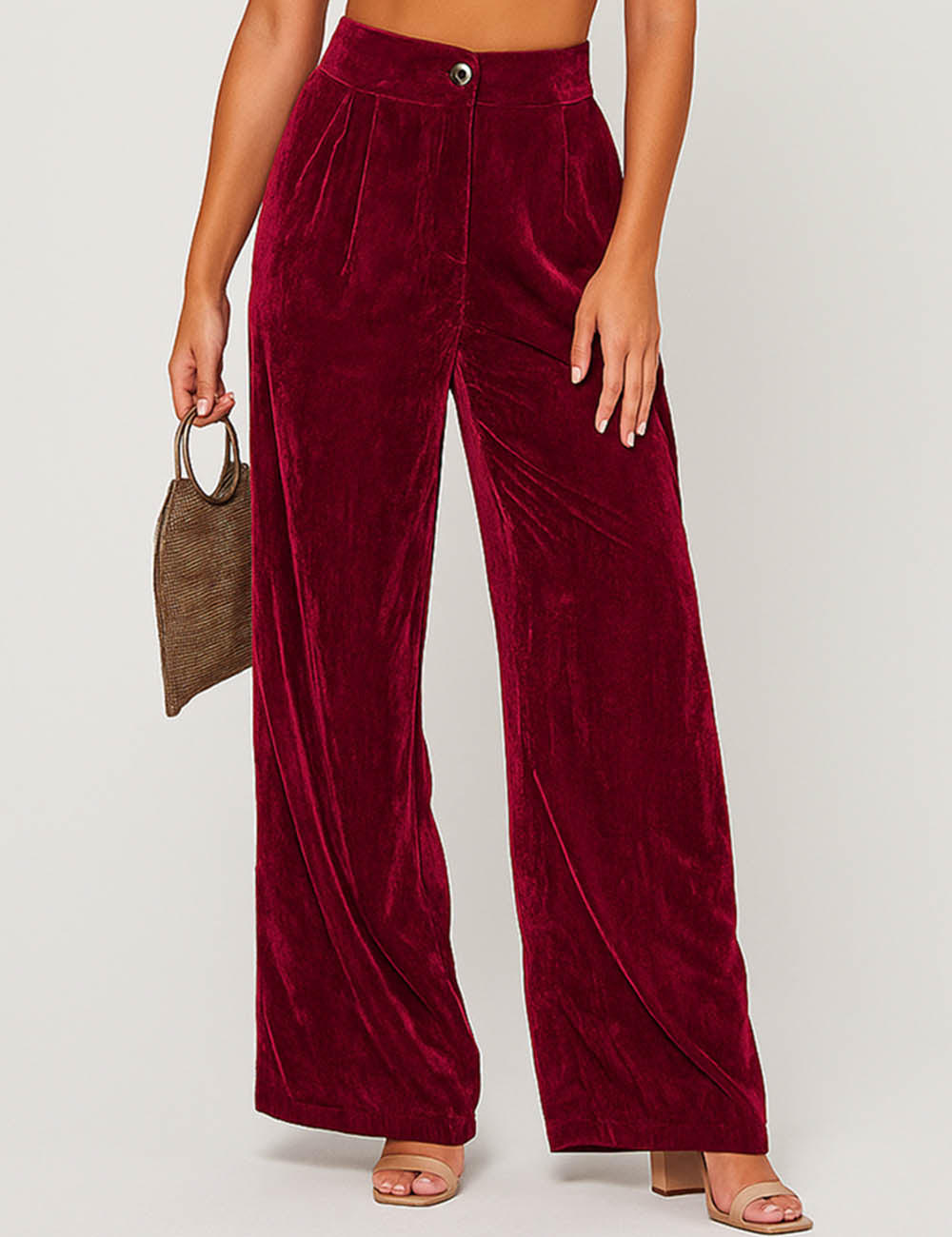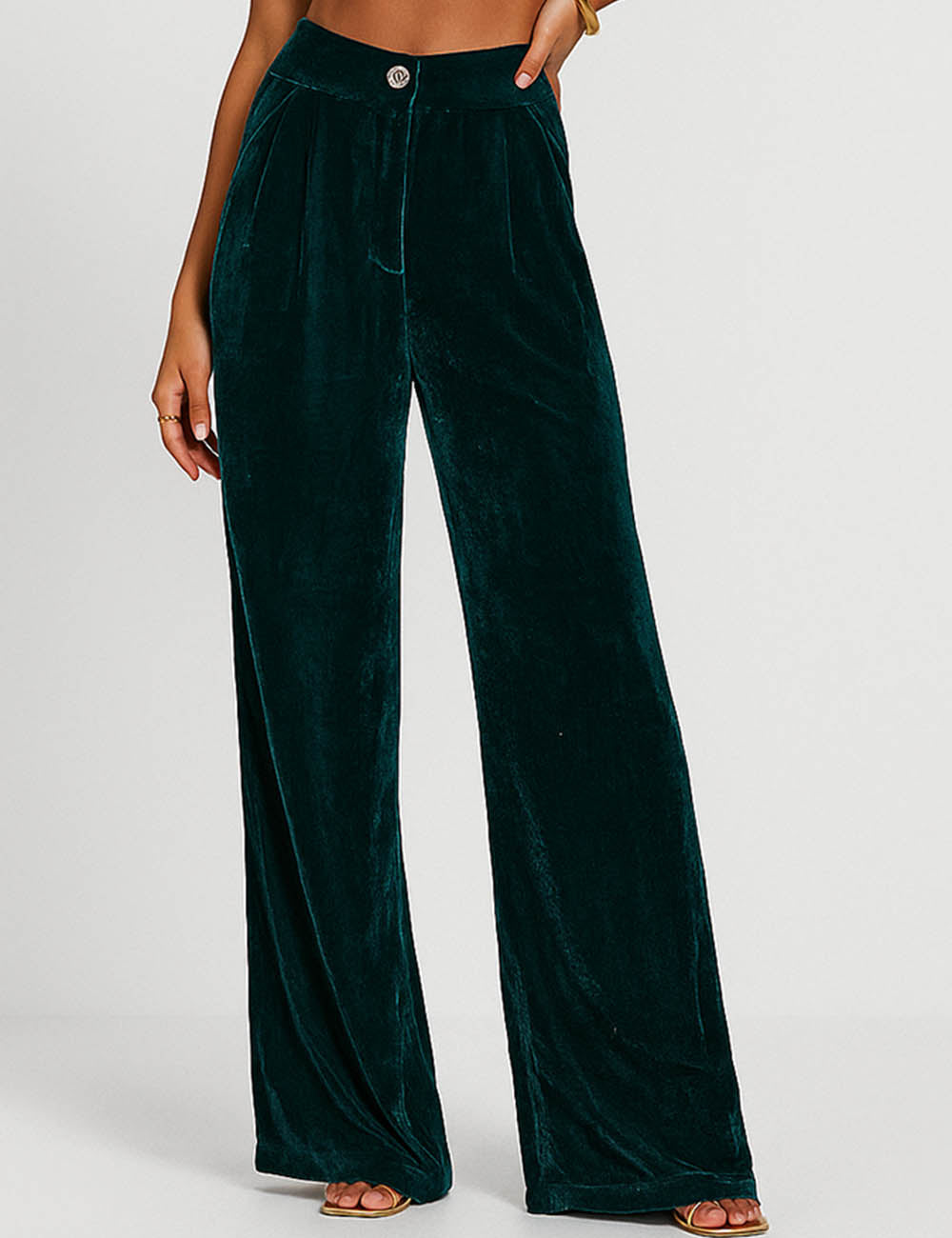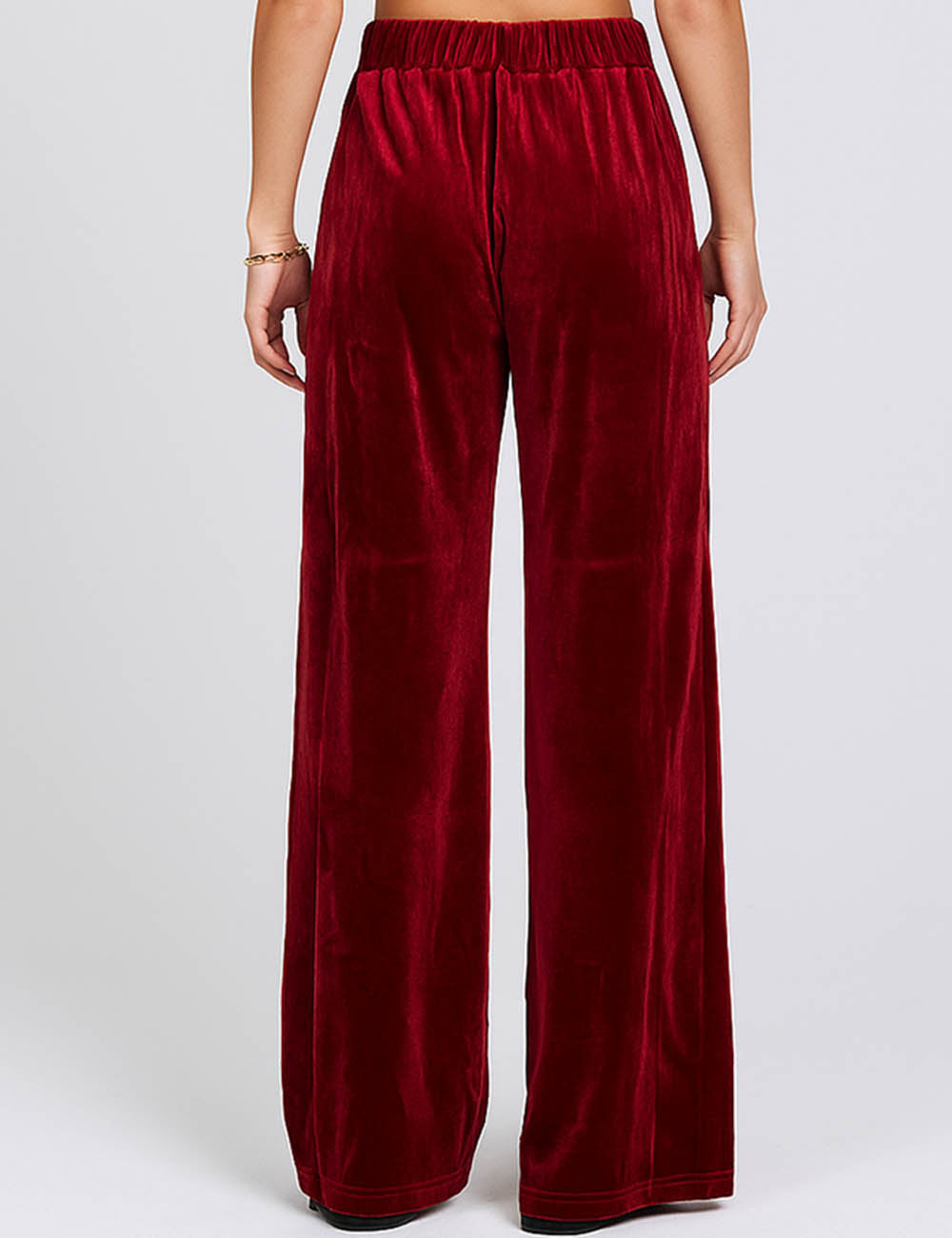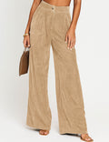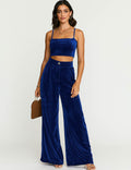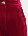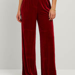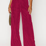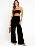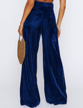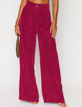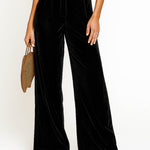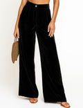 Ladies Glossy Velvet Zip Fly Pocket Wide Leg Pants