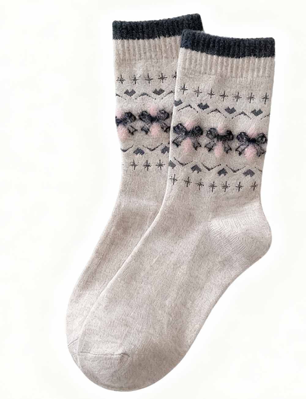 Ladies Cozy Warm Winter Bow Knit Midi Calf Socks