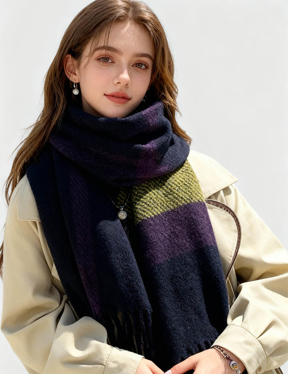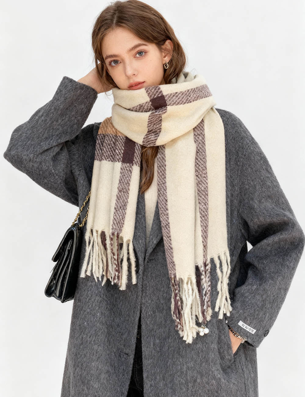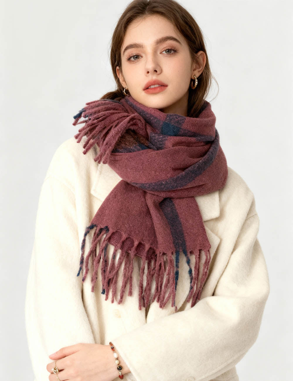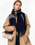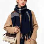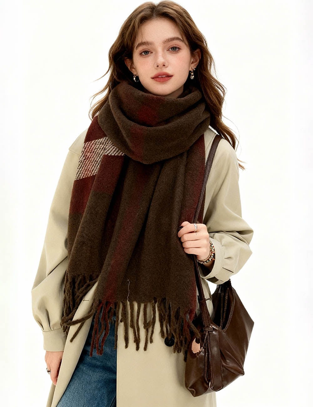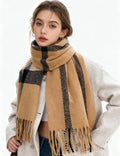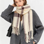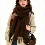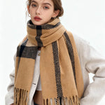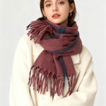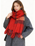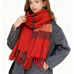 Ladies Cozy Winter Plaid Tassel Knit Scarf