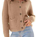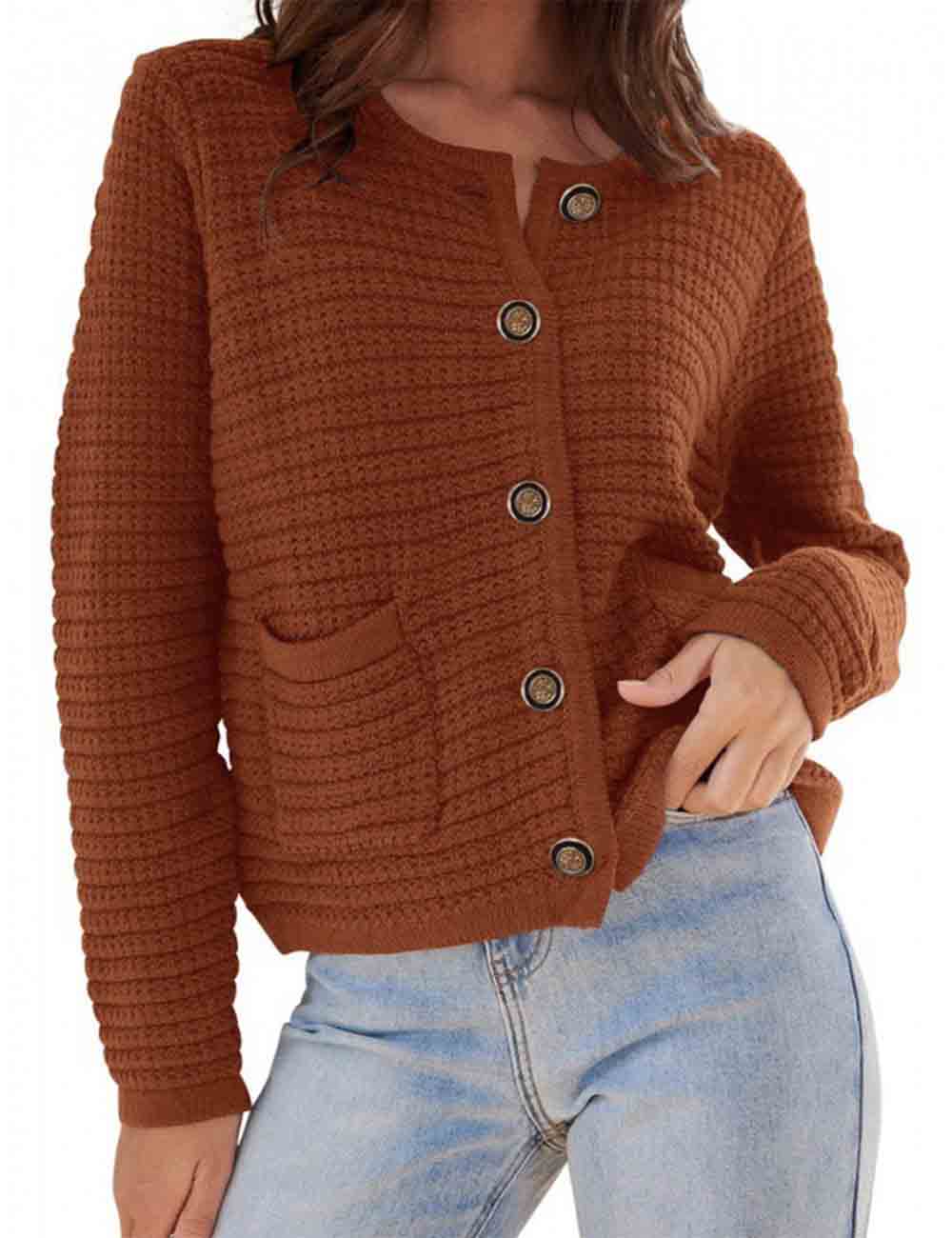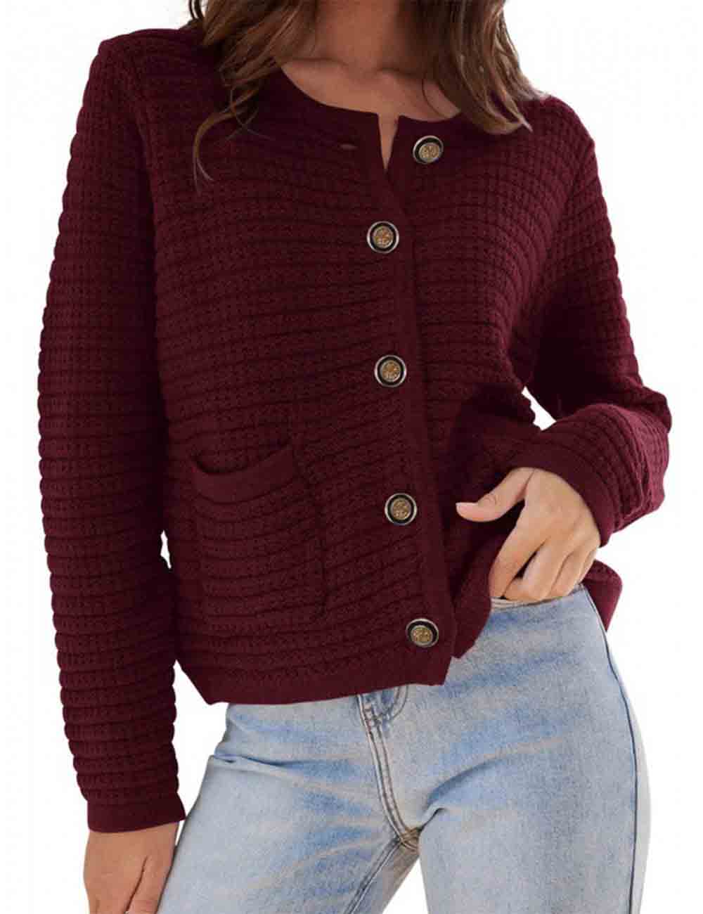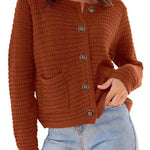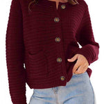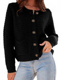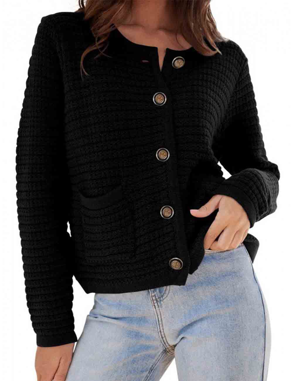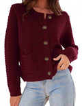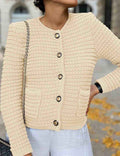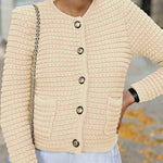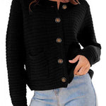 Ladies Crew Neck Crochet Button Cropped Knit Cardigan