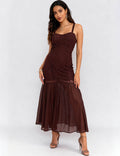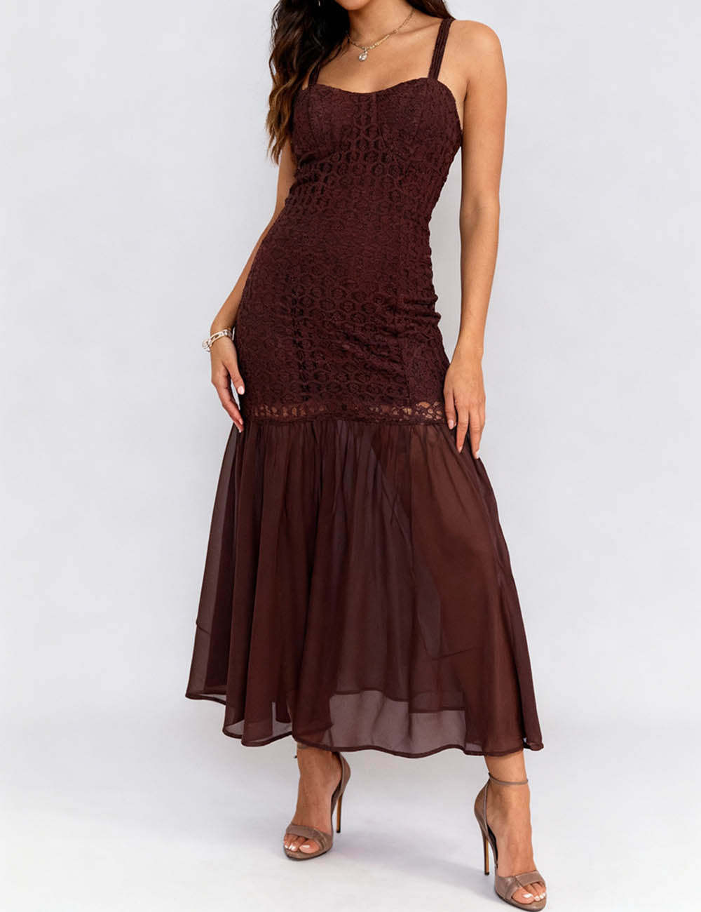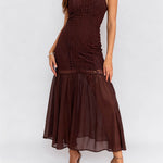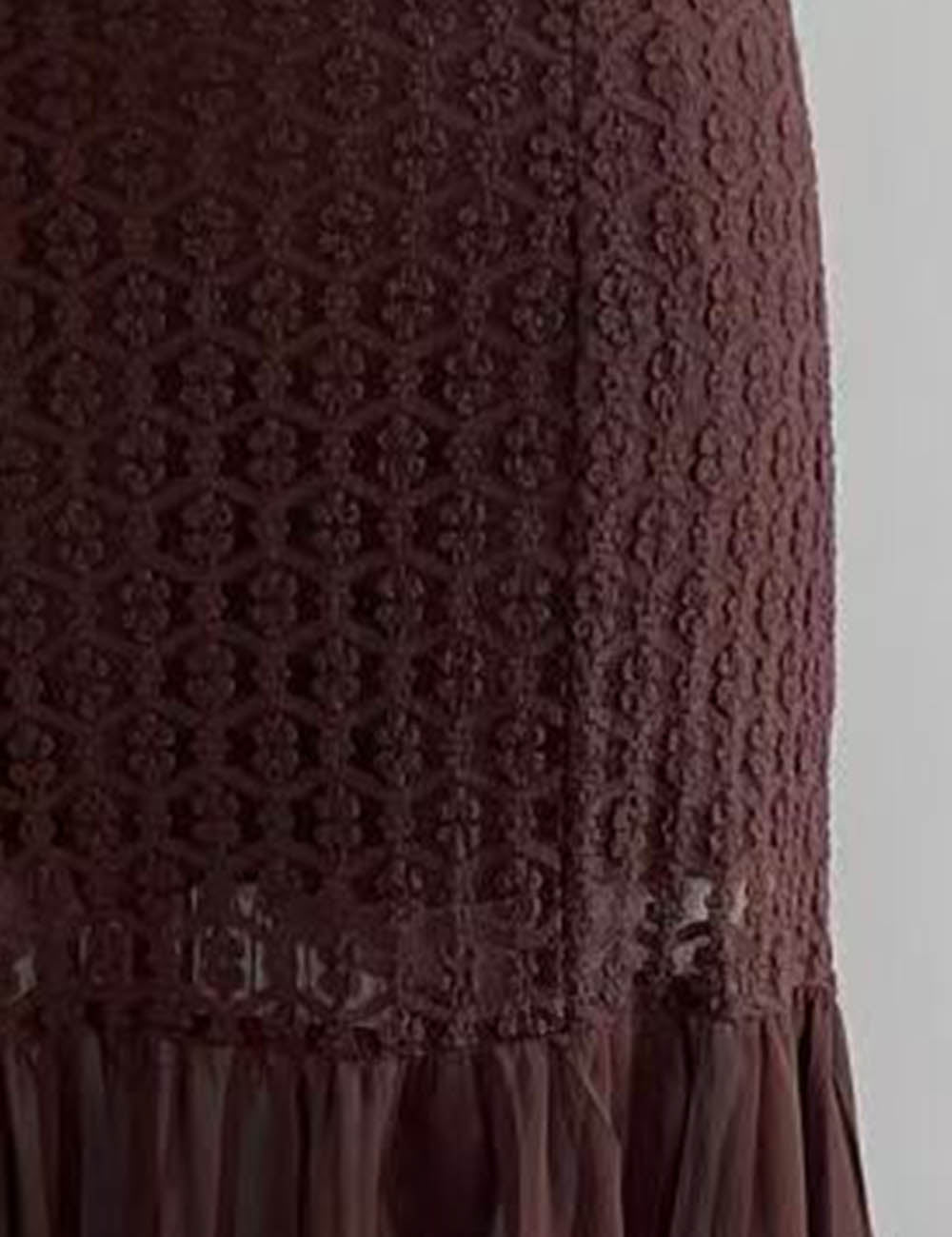 Ladies Crochet Bodice Cross-Back Mesh Hem Maxi Dress