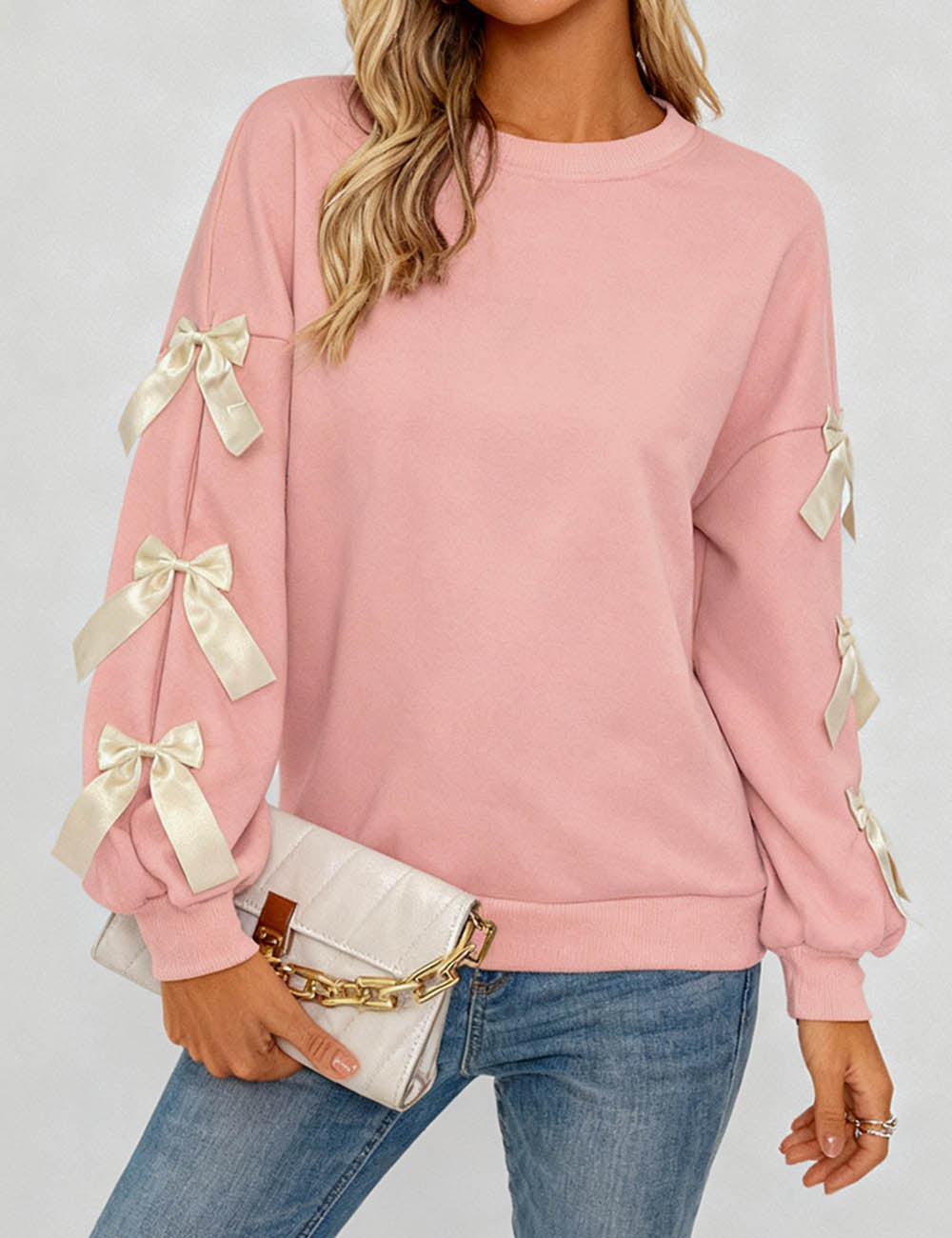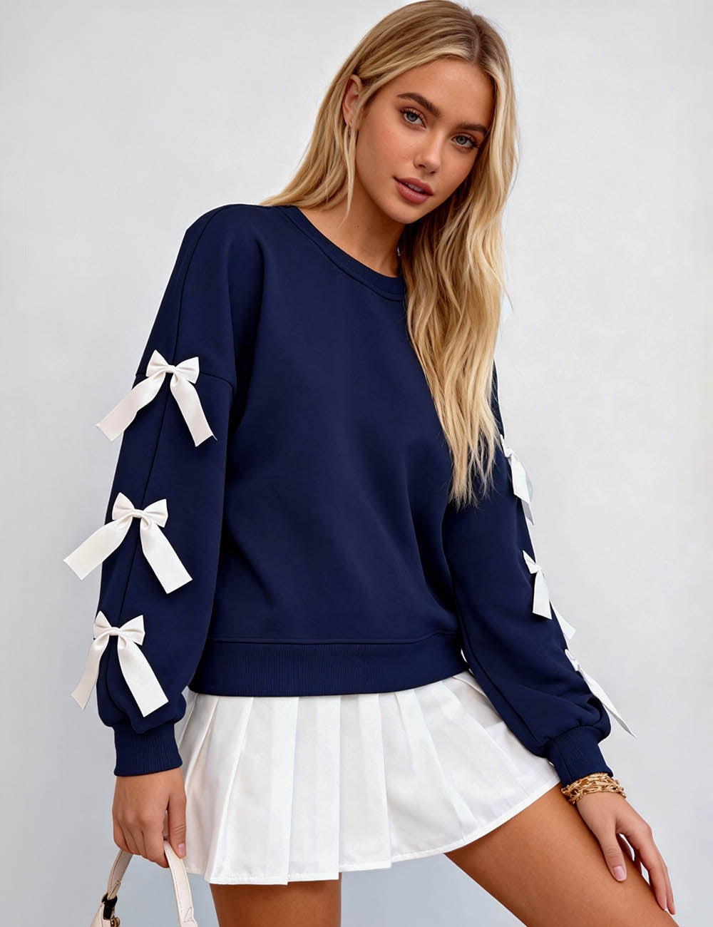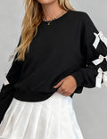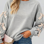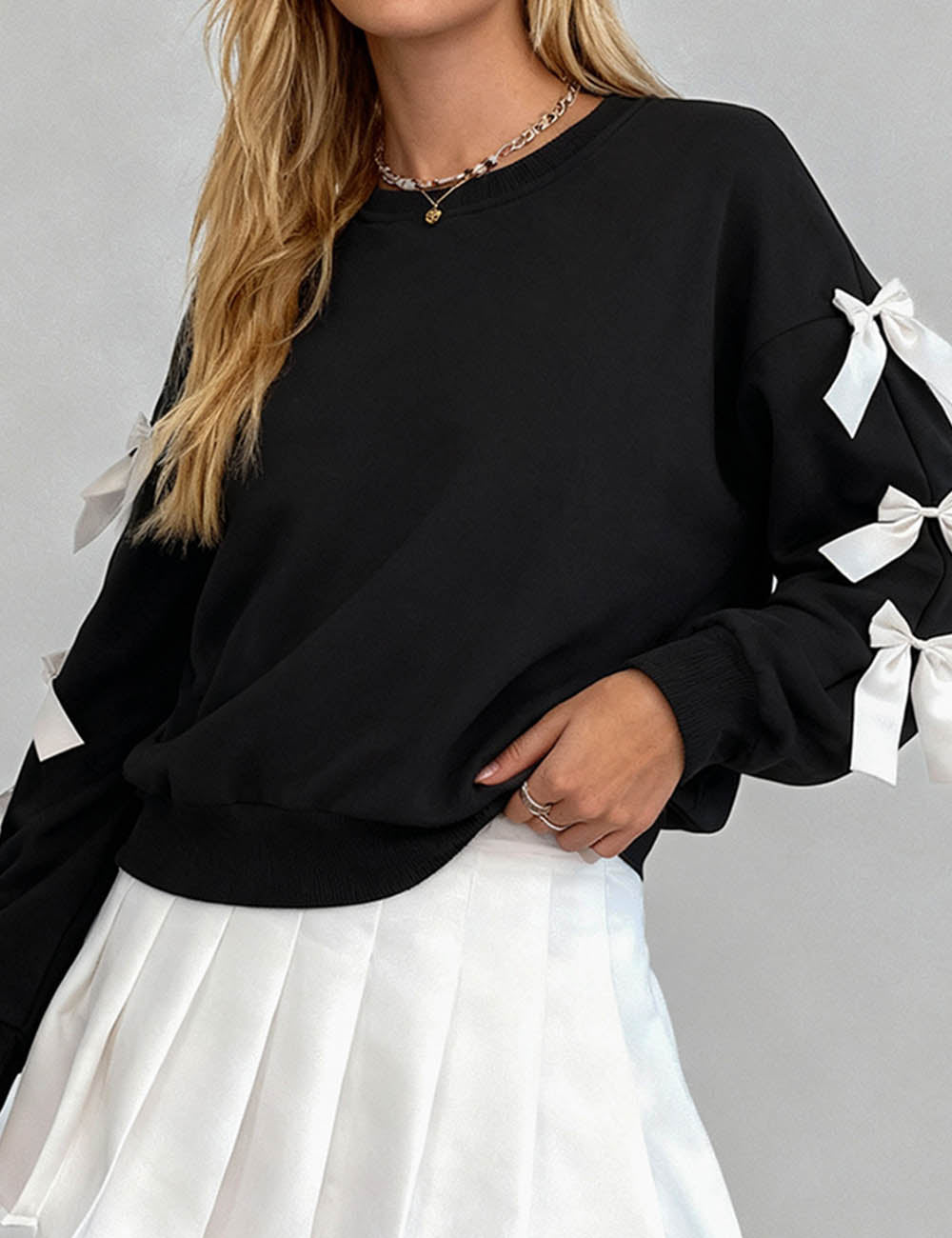 Ladies Cute Round Neck Bow Sleeves Pullover Sweatshirt