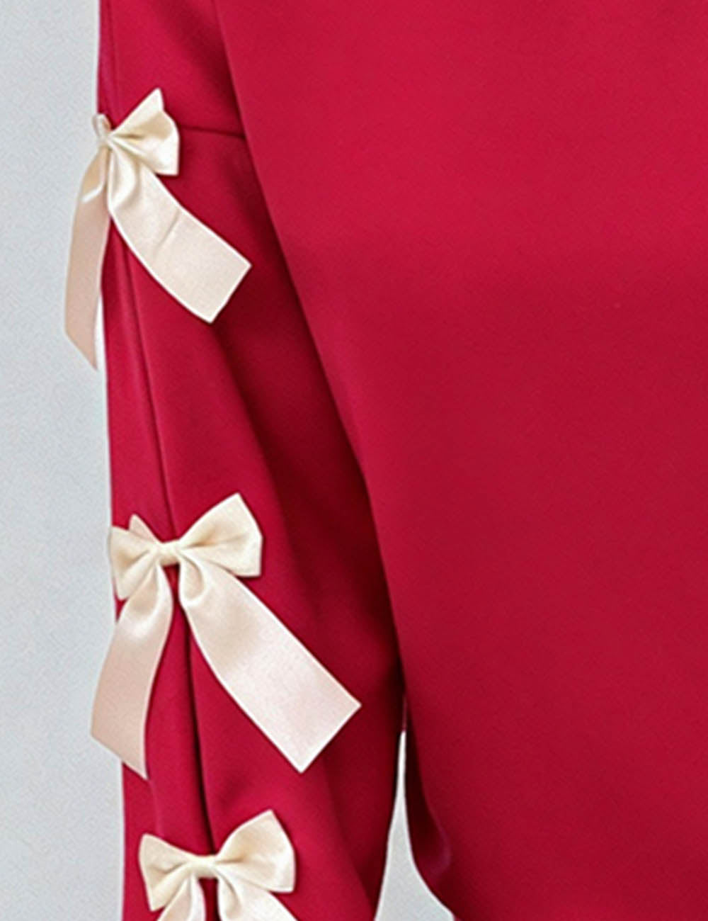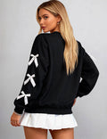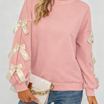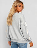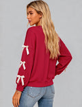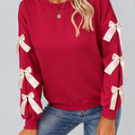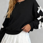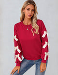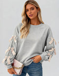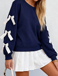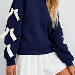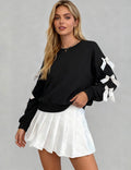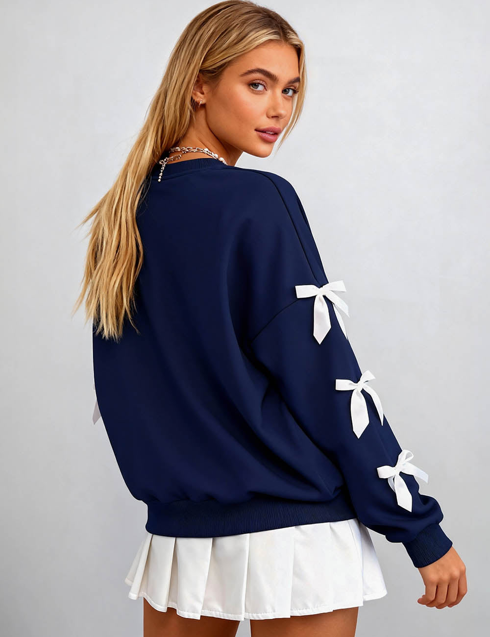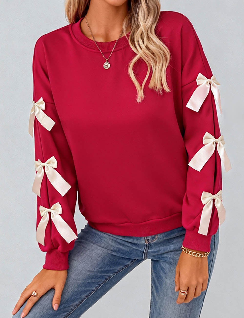 Ladies Cute Round Neck Bow Sleeves Pullover Sweatshirt