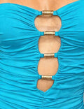 Ladies Cutout Ring Ruched Bodice Tube Bodycon Mini Dress