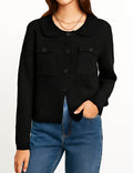 Ladies Diamond Knit Cardigan Hollow Out Peter Collar Sweater Top
