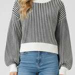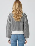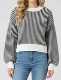 Ladies Diamond Knit Color Block Pullover Lantern Sleeves Sweater