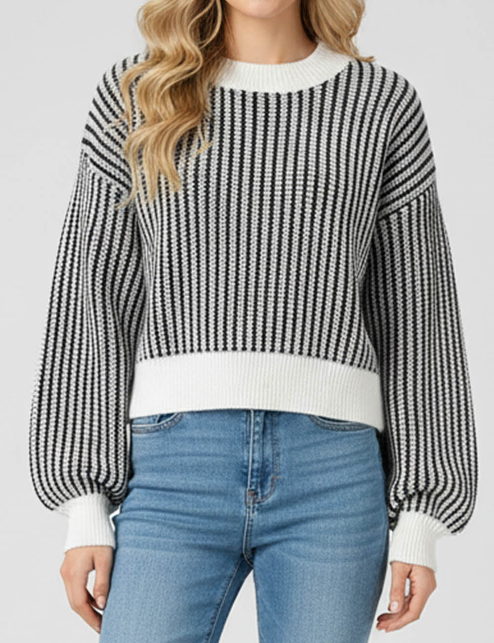 * Ribbed Neckline, Cuffs and Hemline