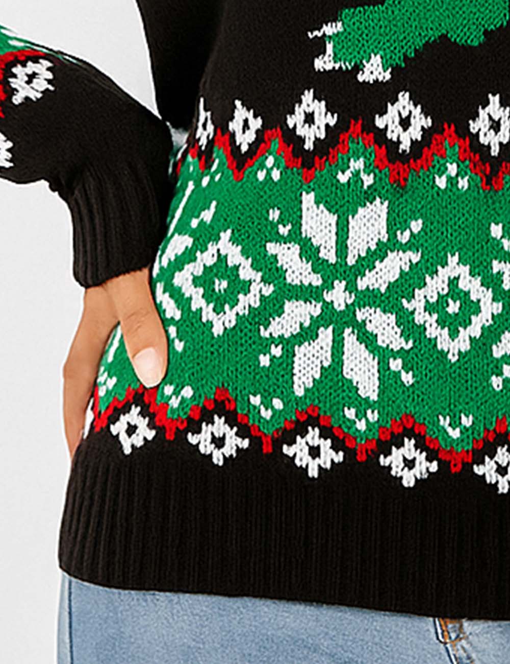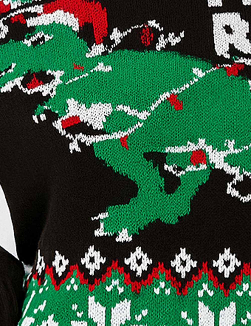 Ladies Christmas Dinosaur Pattern Round Neck Sweater