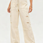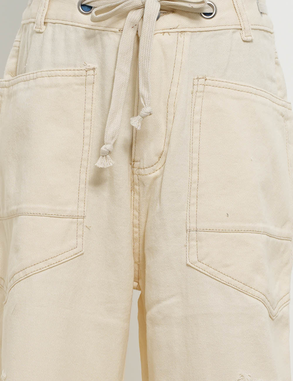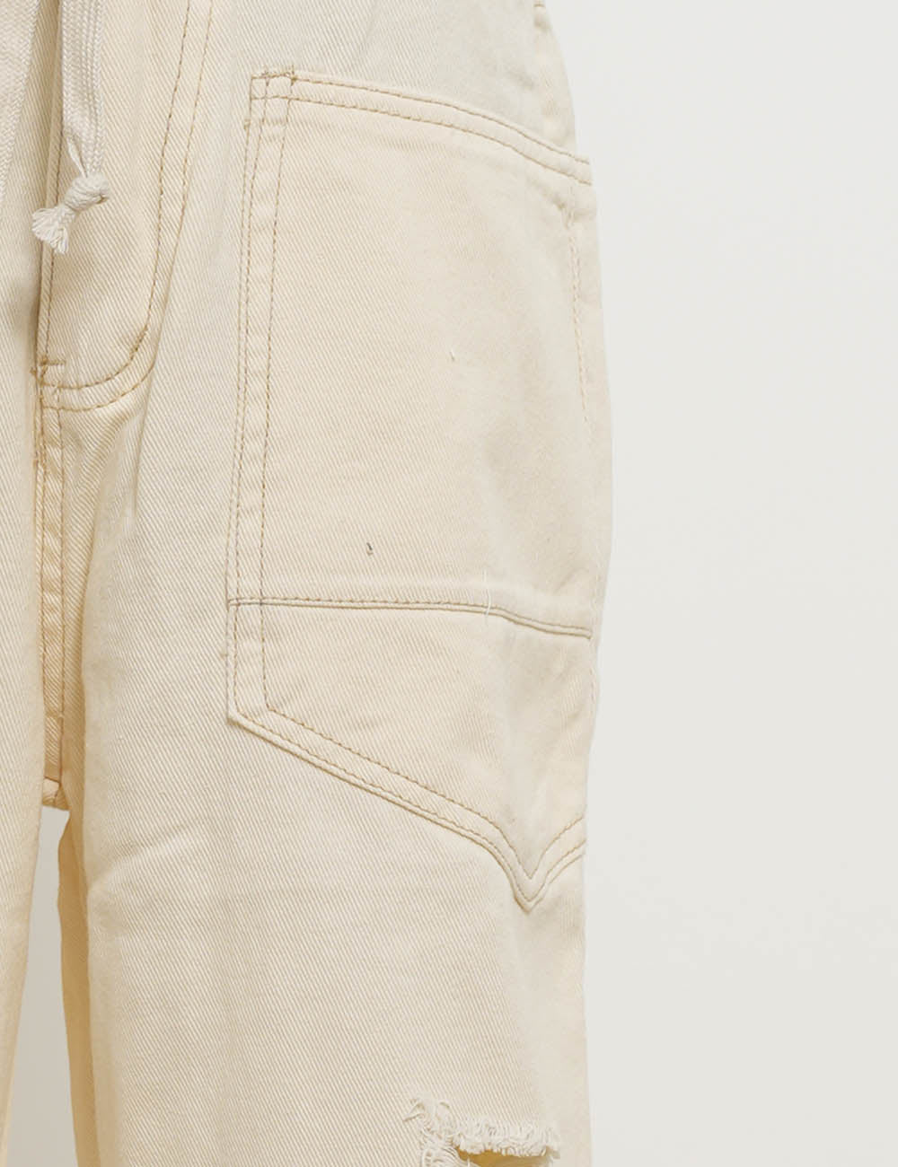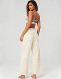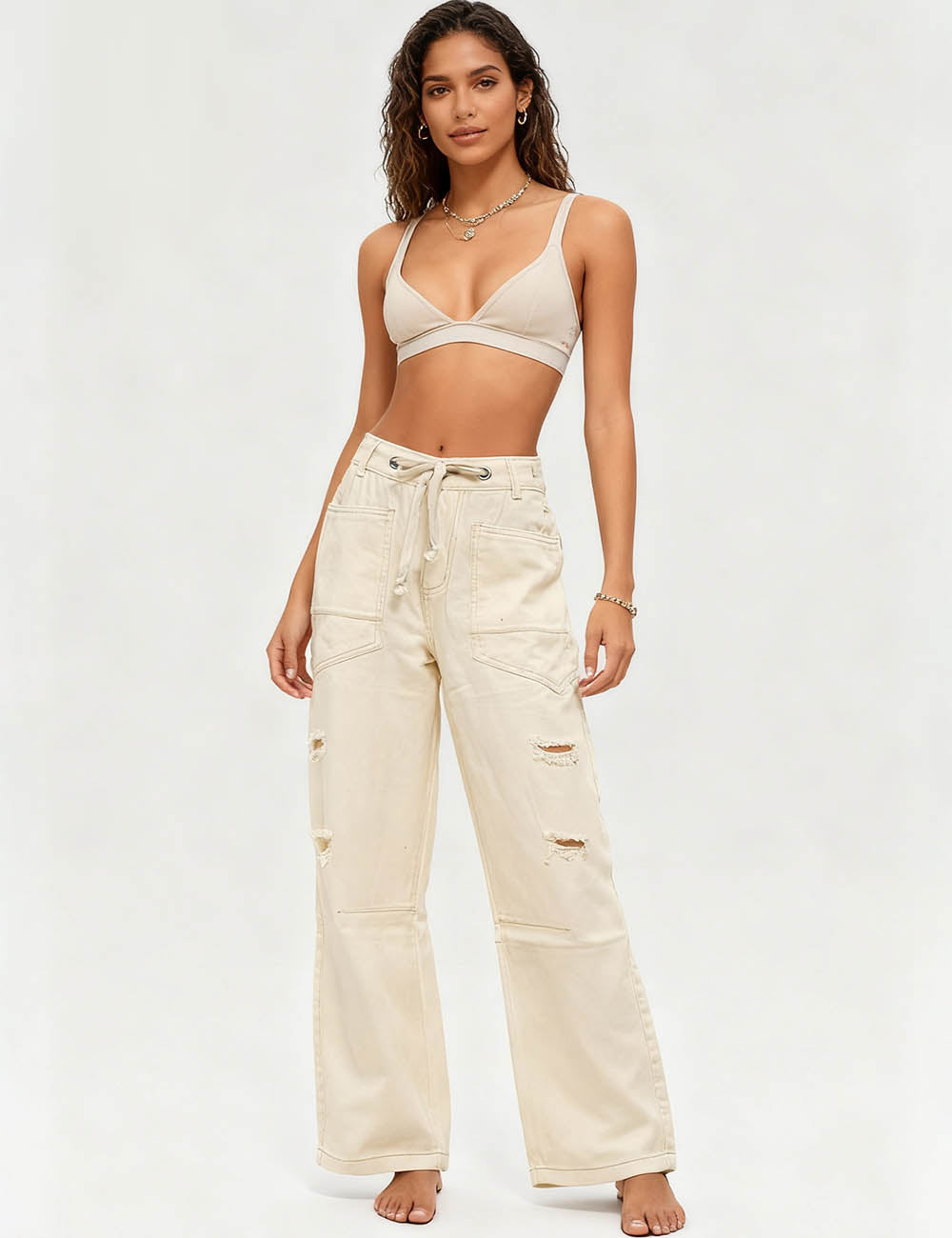 Ladies Distressed Wide Leg Patch Pocket Denim Pants
