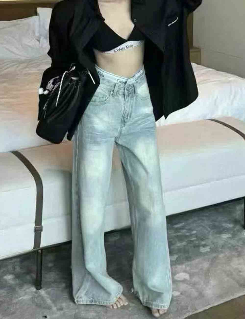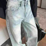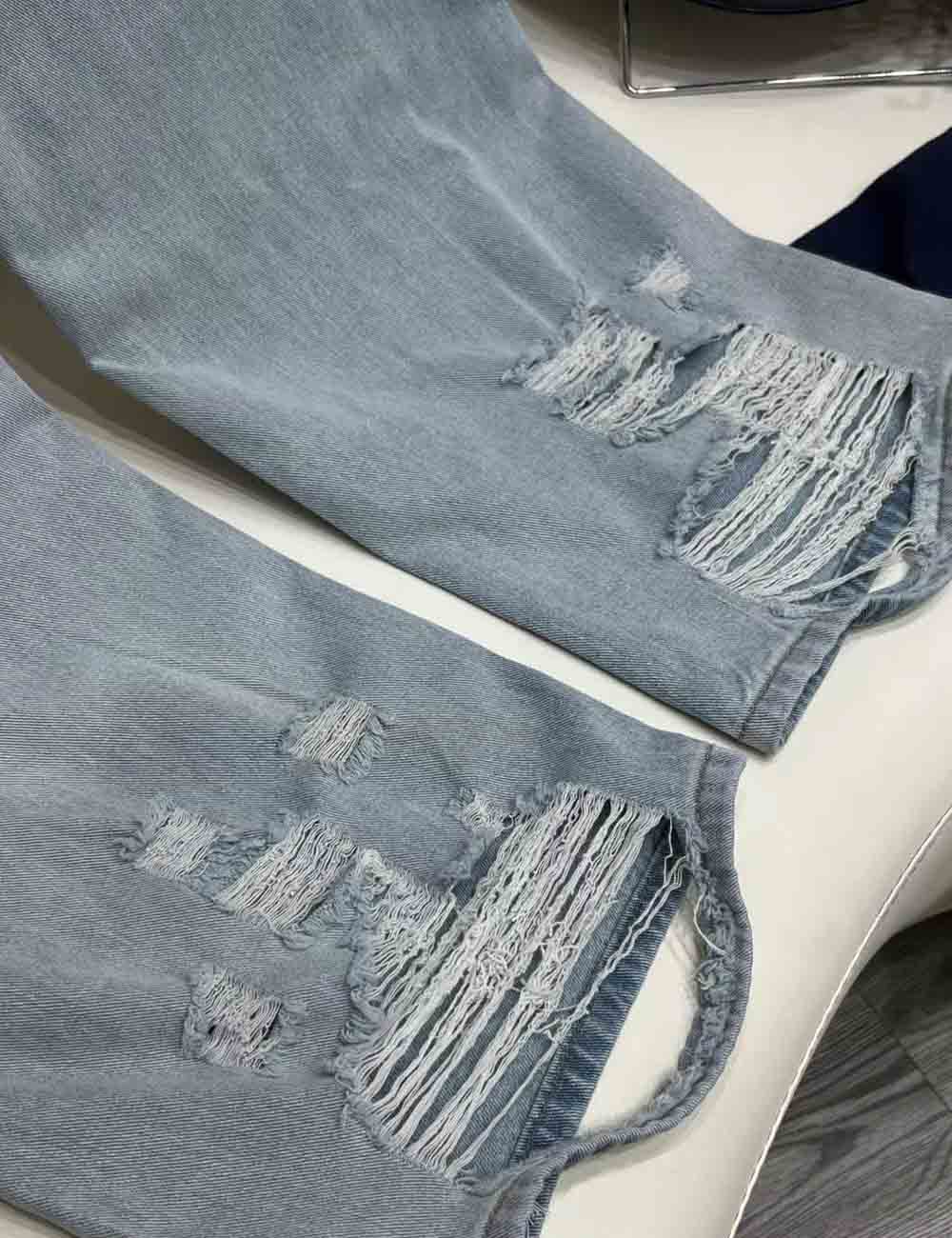 Ladies Distressed Patchwork Wide Leg Denim Pants