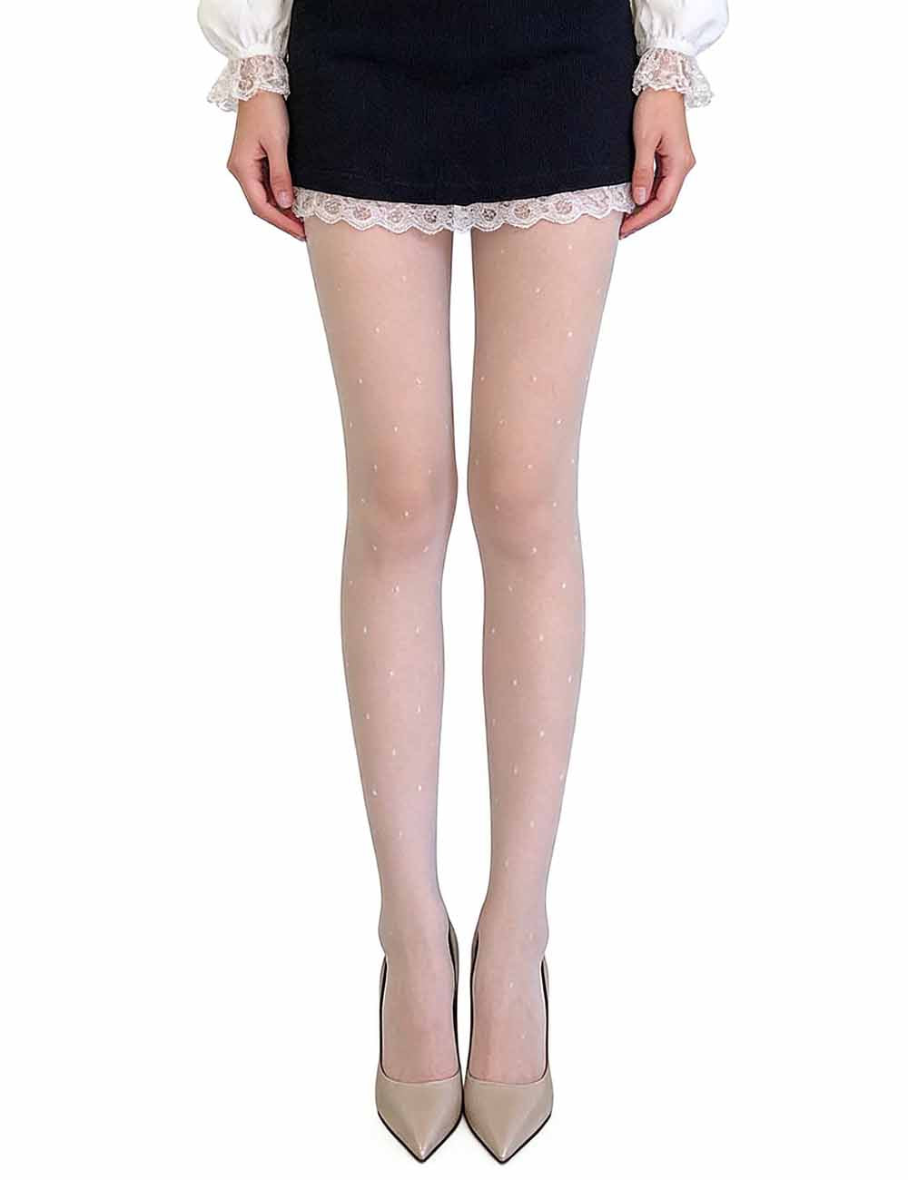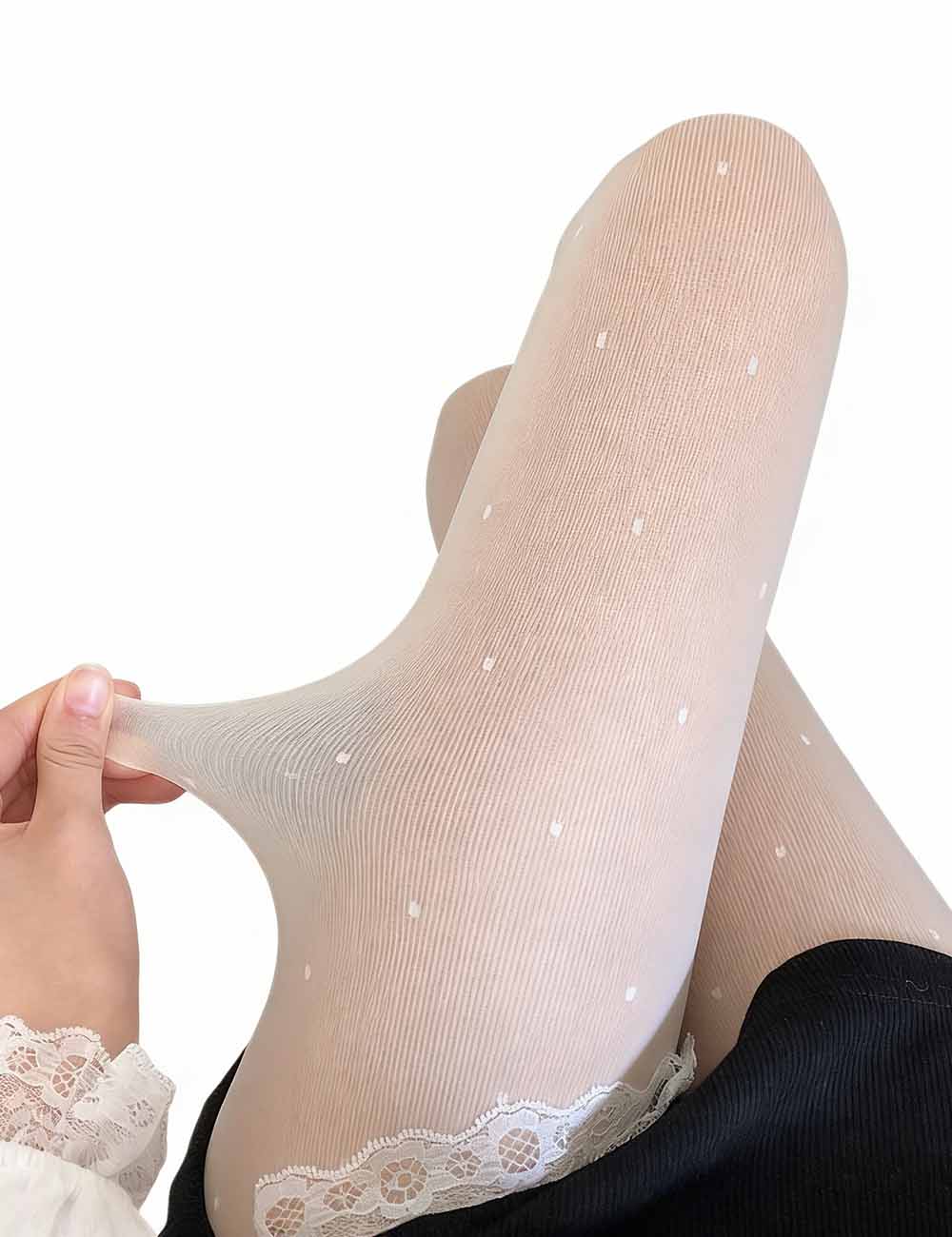 Ladies Dot Pattern See Sheer Non-Fleece Lined Pantyhose
