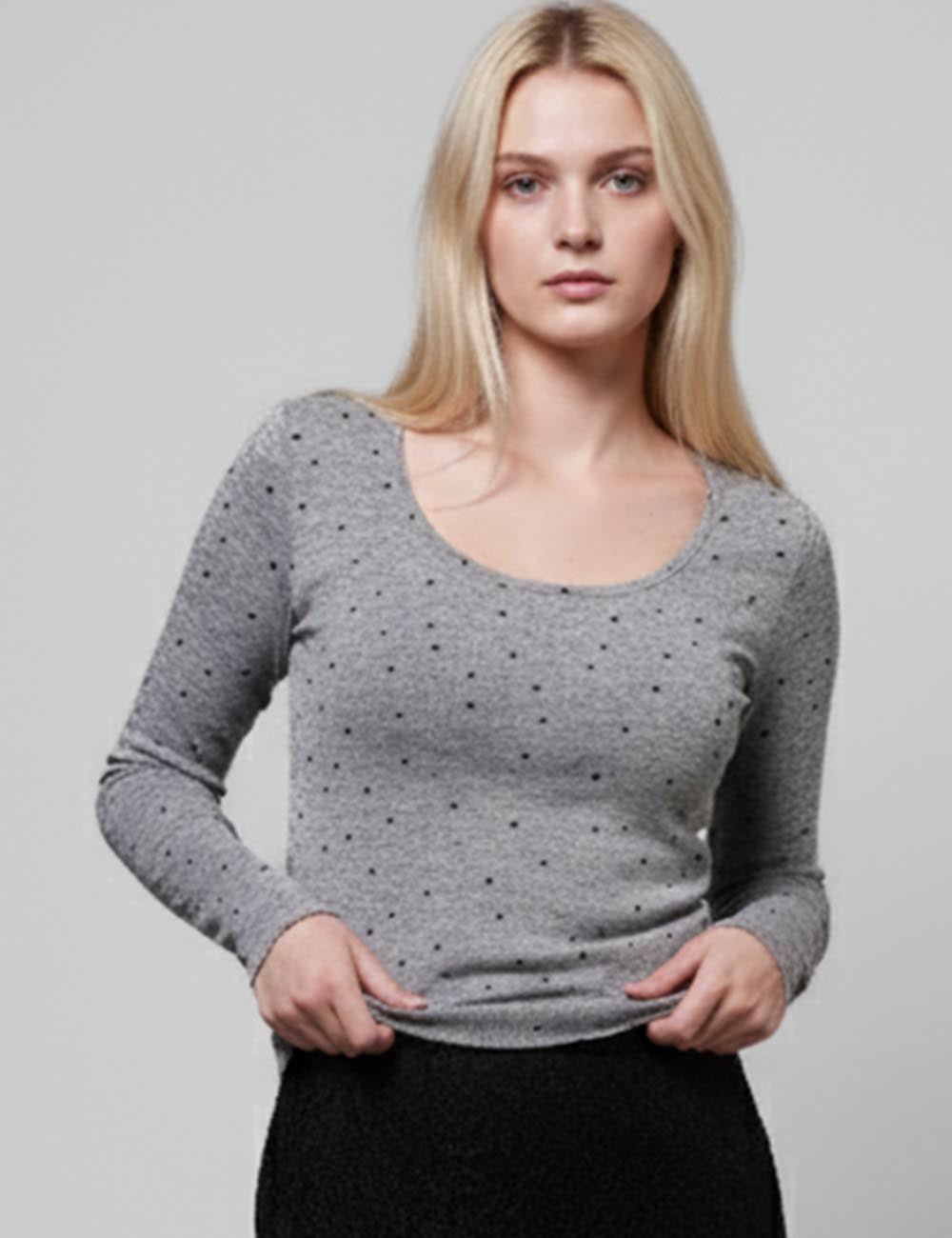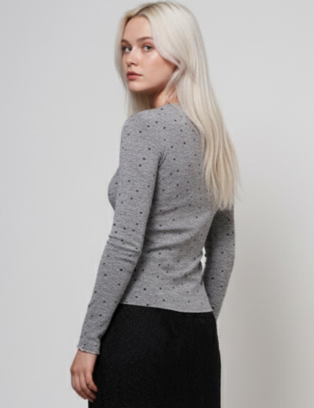 Ladies Dot Print See Sheer Layring Top SKT50744