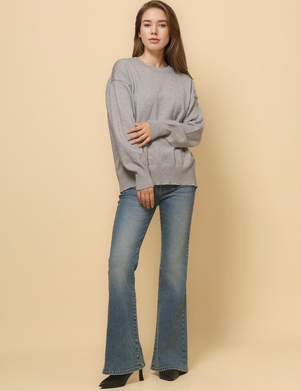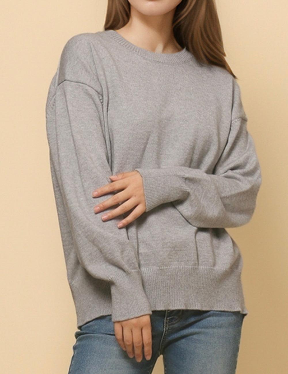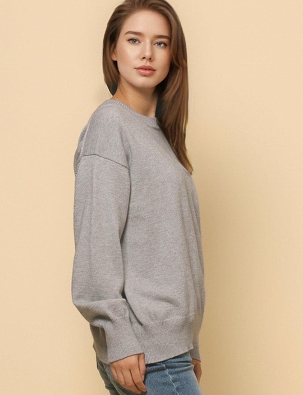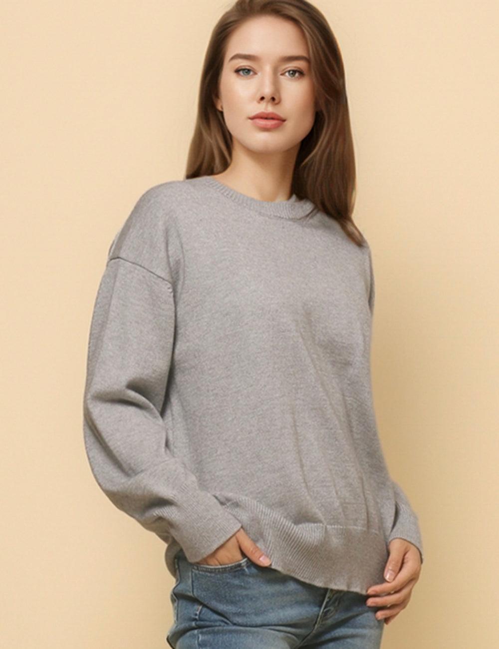 Ladies Drop Shoulder Round Neck Pullover Sweater SKT4782