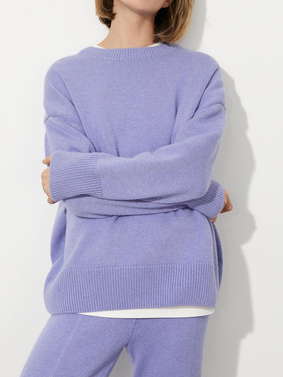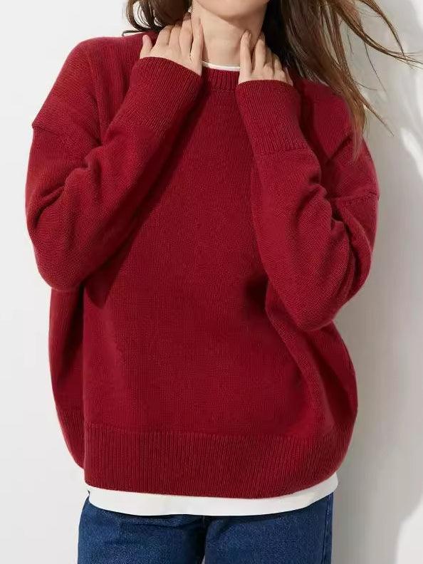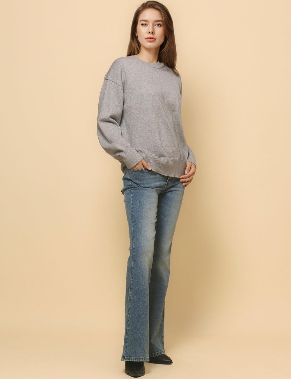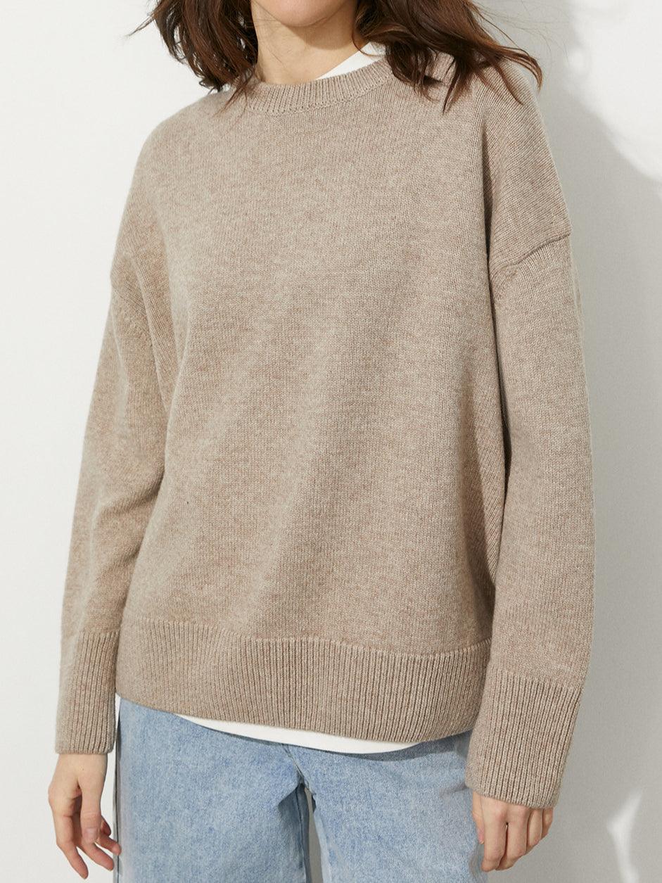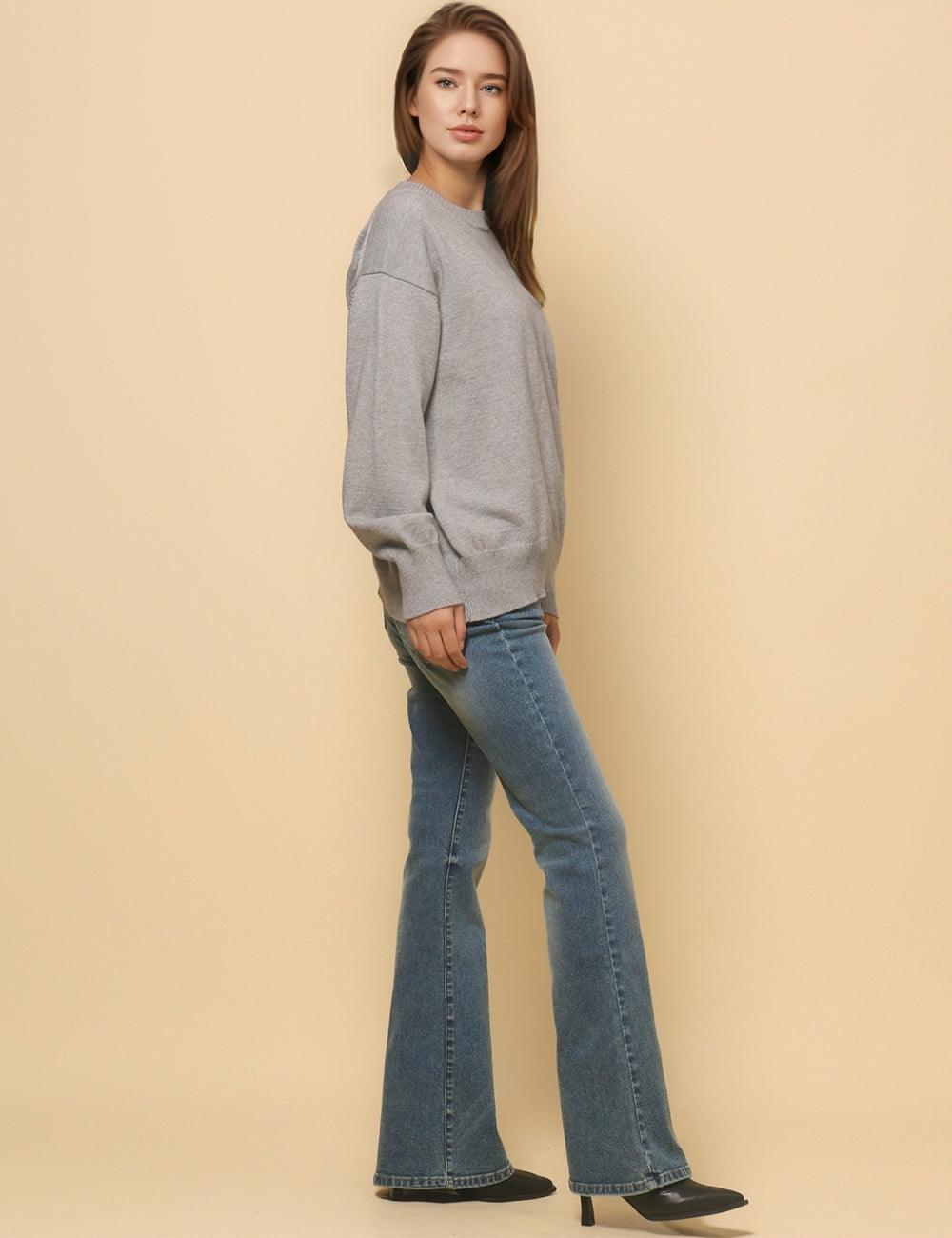 Ladies Drop Shoulder Round Neck Pullover Sweater SKT4782