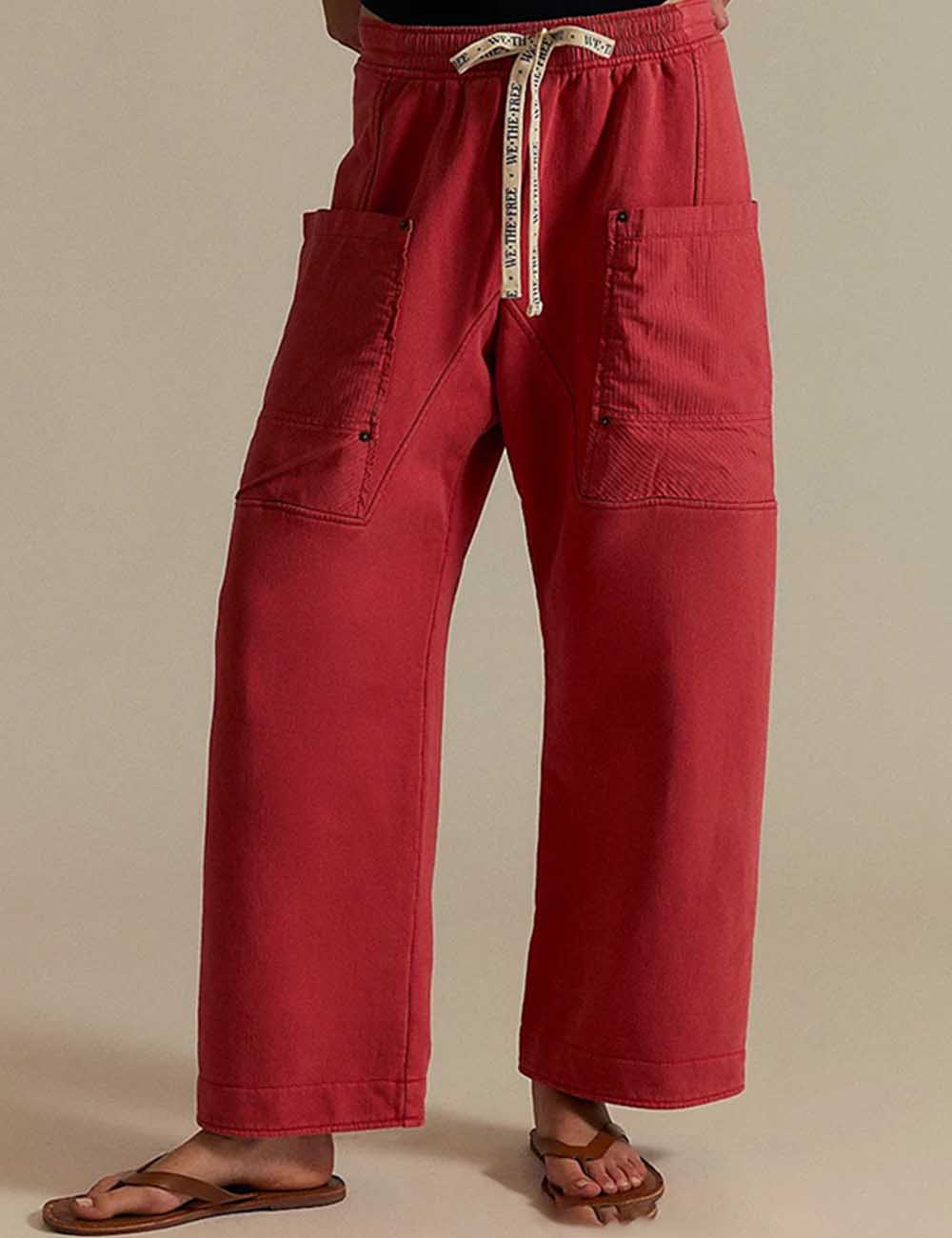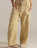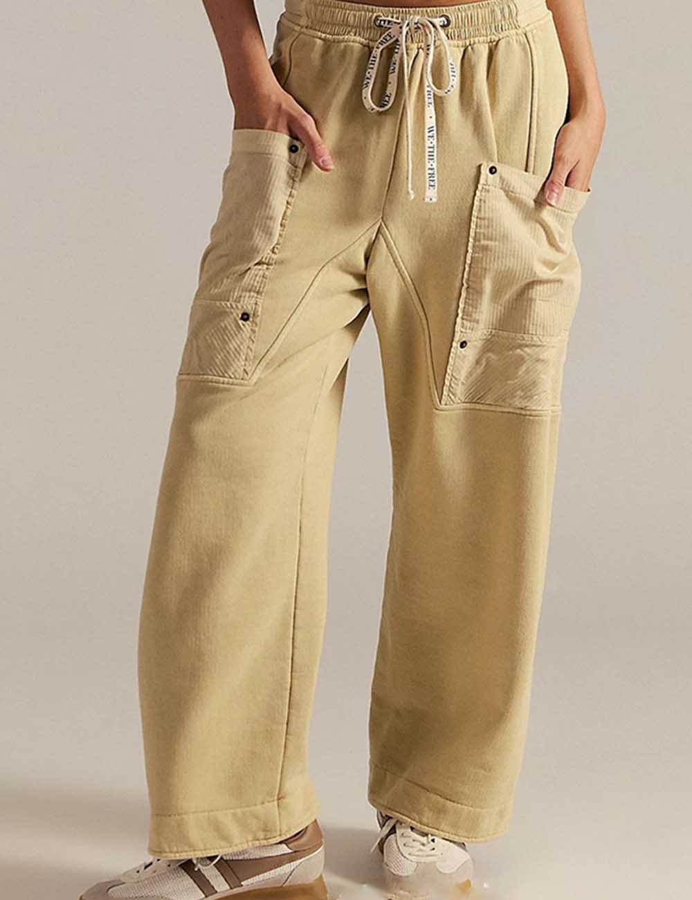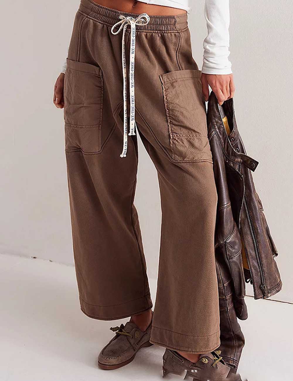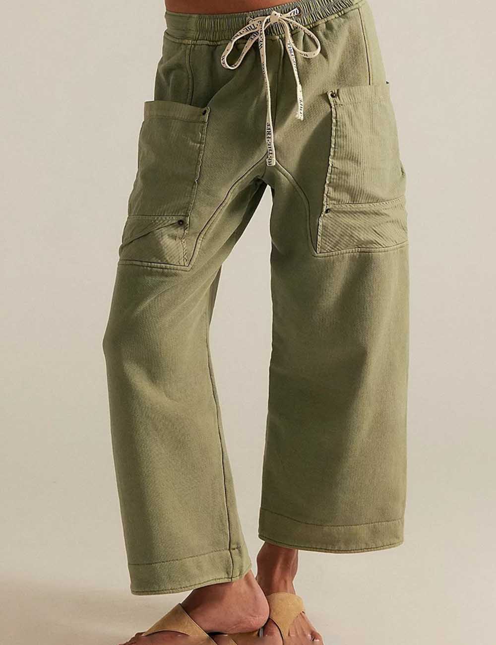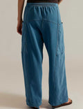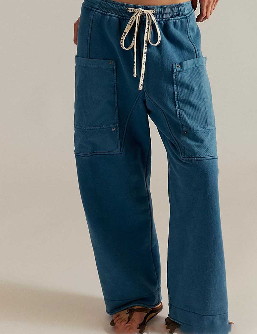 Ladies Elastic Waist Drawstring Pockets Stright Leg Denim Pants