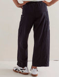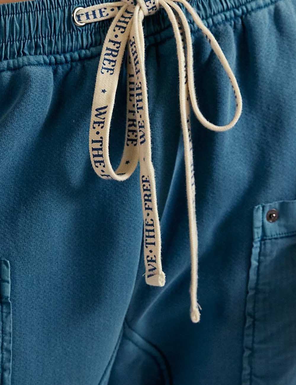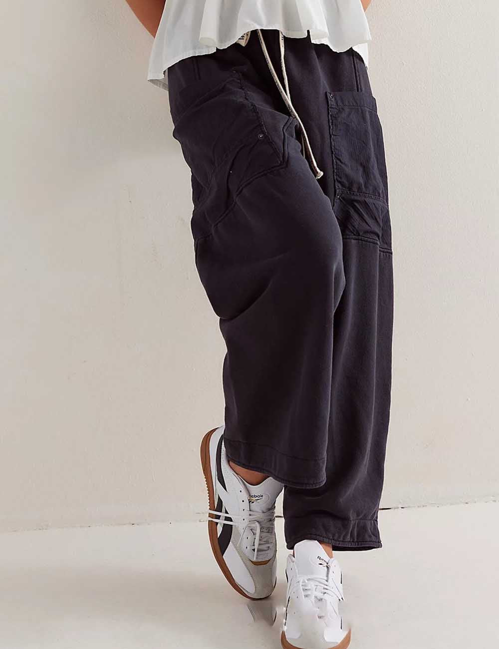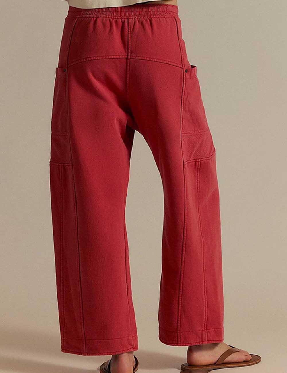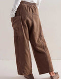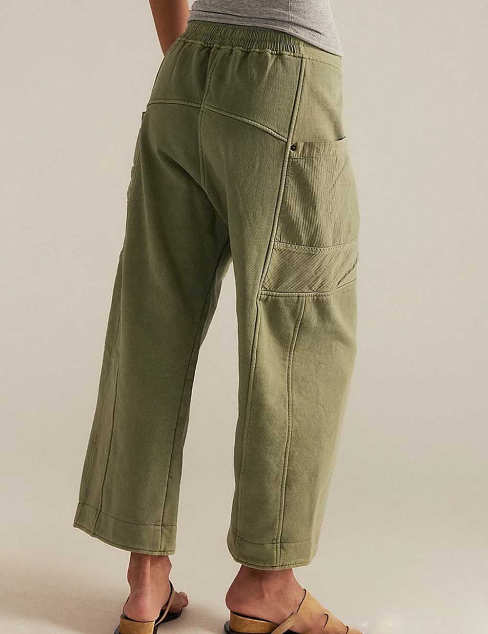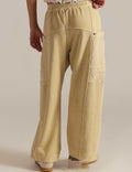 Ladies Elastic Waist Drawstring Pockets Stright Leg Denim Pants