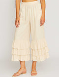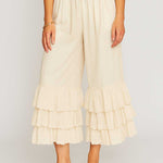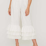 Ladies Elastic Waist Eyelet Hollow Out Tiered Ruffle Pants