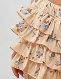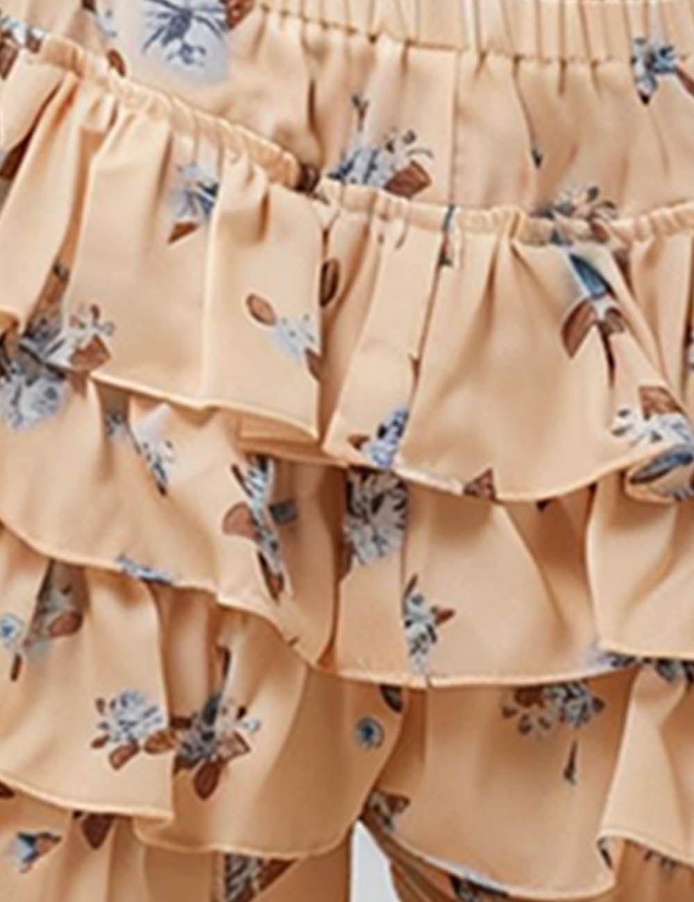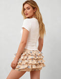 Ladies Elastic Waist Floral Print Ruffle Shorts SKS5K8
