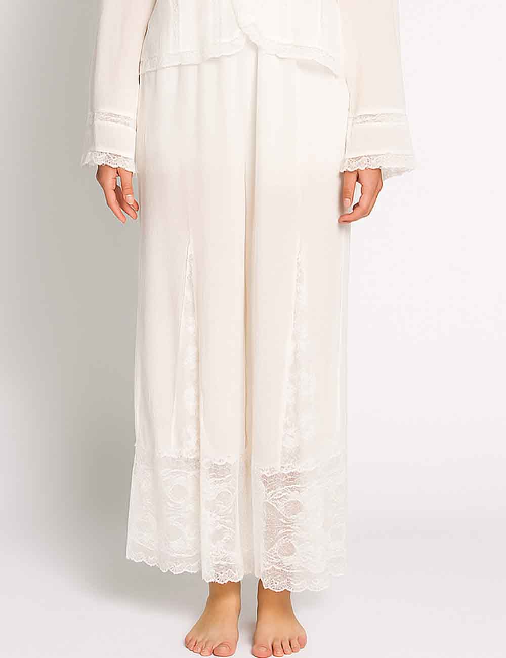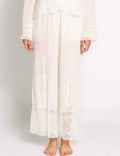 Ladies Elastic Waist Tie Front Split Wide Leg Lace Pants
