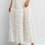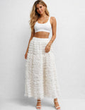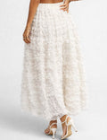 Ladies Elastic Waist Tiered Ruffle Gathered Mesh Maxi Skirt