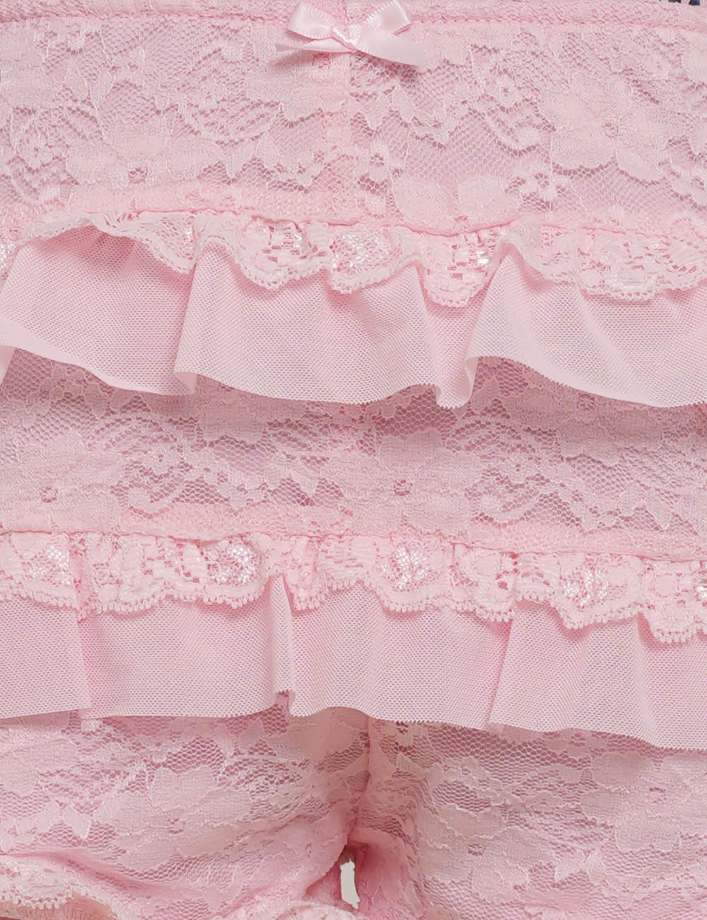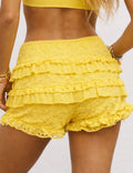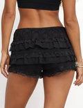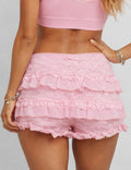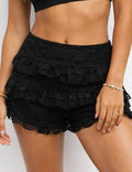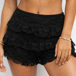 Ladies Elastic Waist Tiered Ruffle Lace Trim Shorts