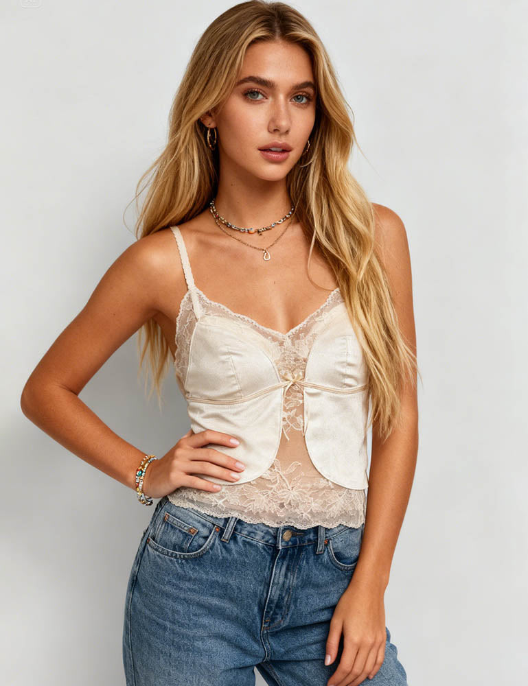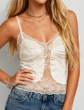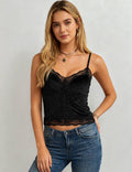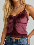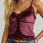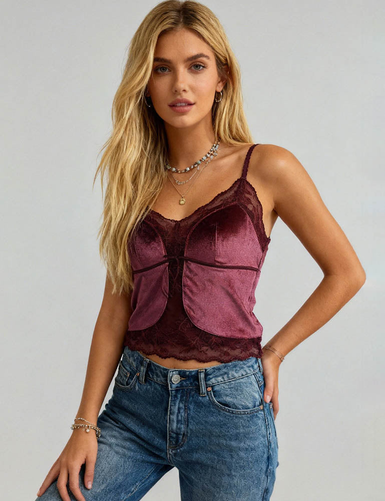 Ladies Eleglant Velet V-Neck Lace Trim Cami Top