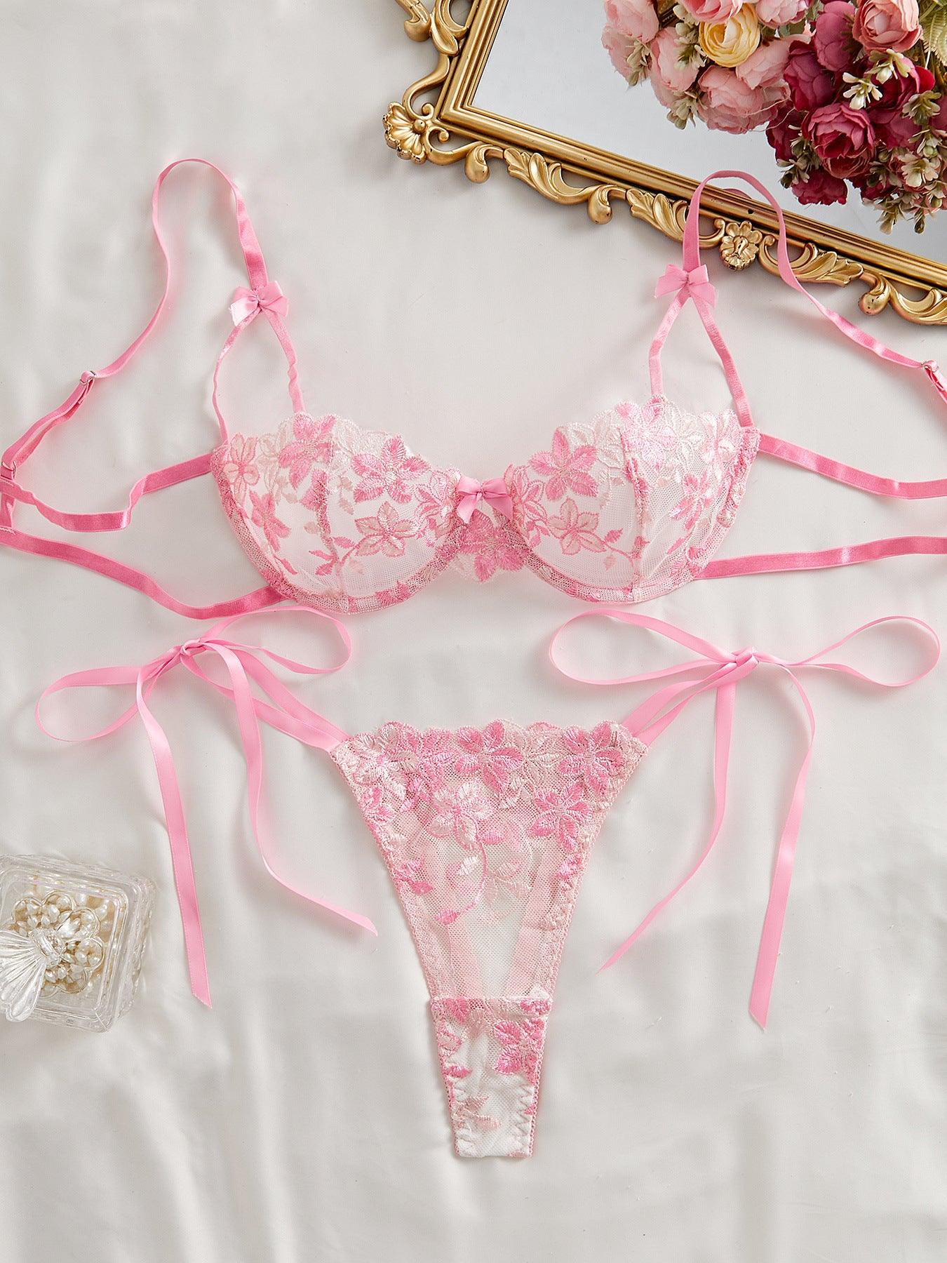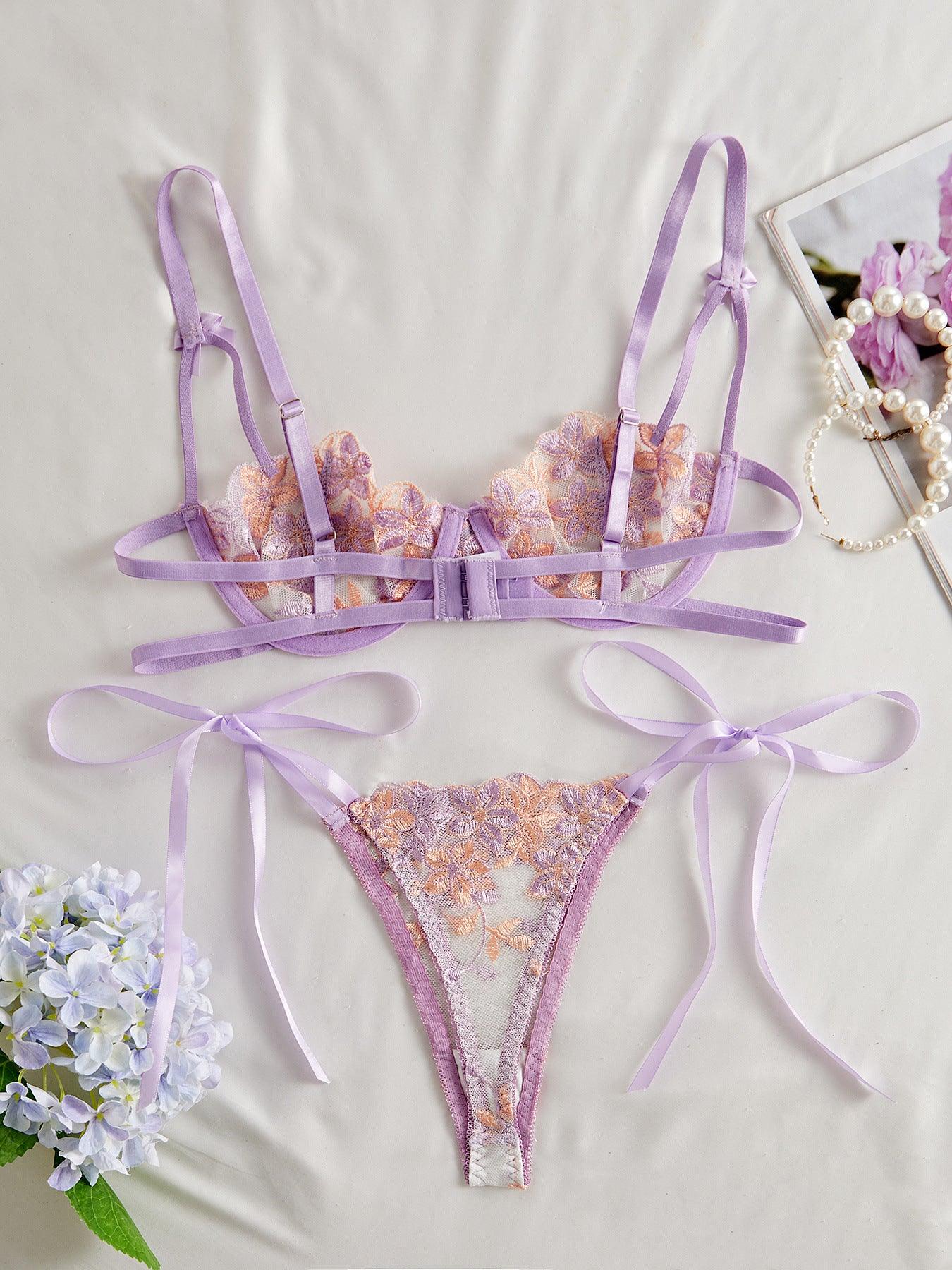 Ladies Embroidery Floral Sexy 2PCS Lingerie Set SKLG4018