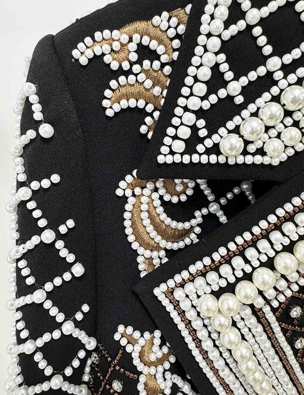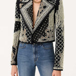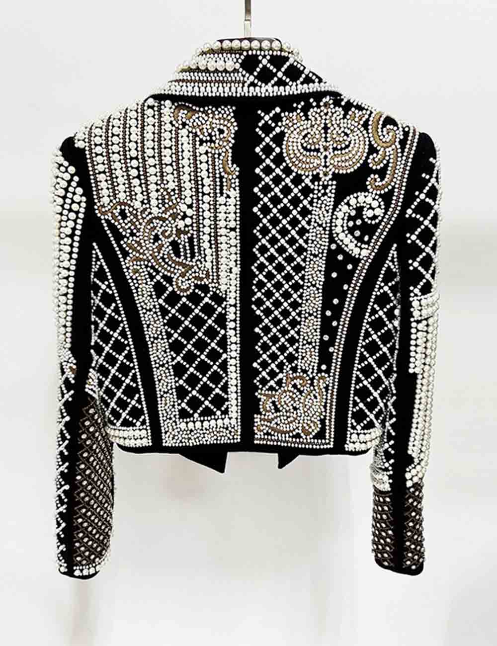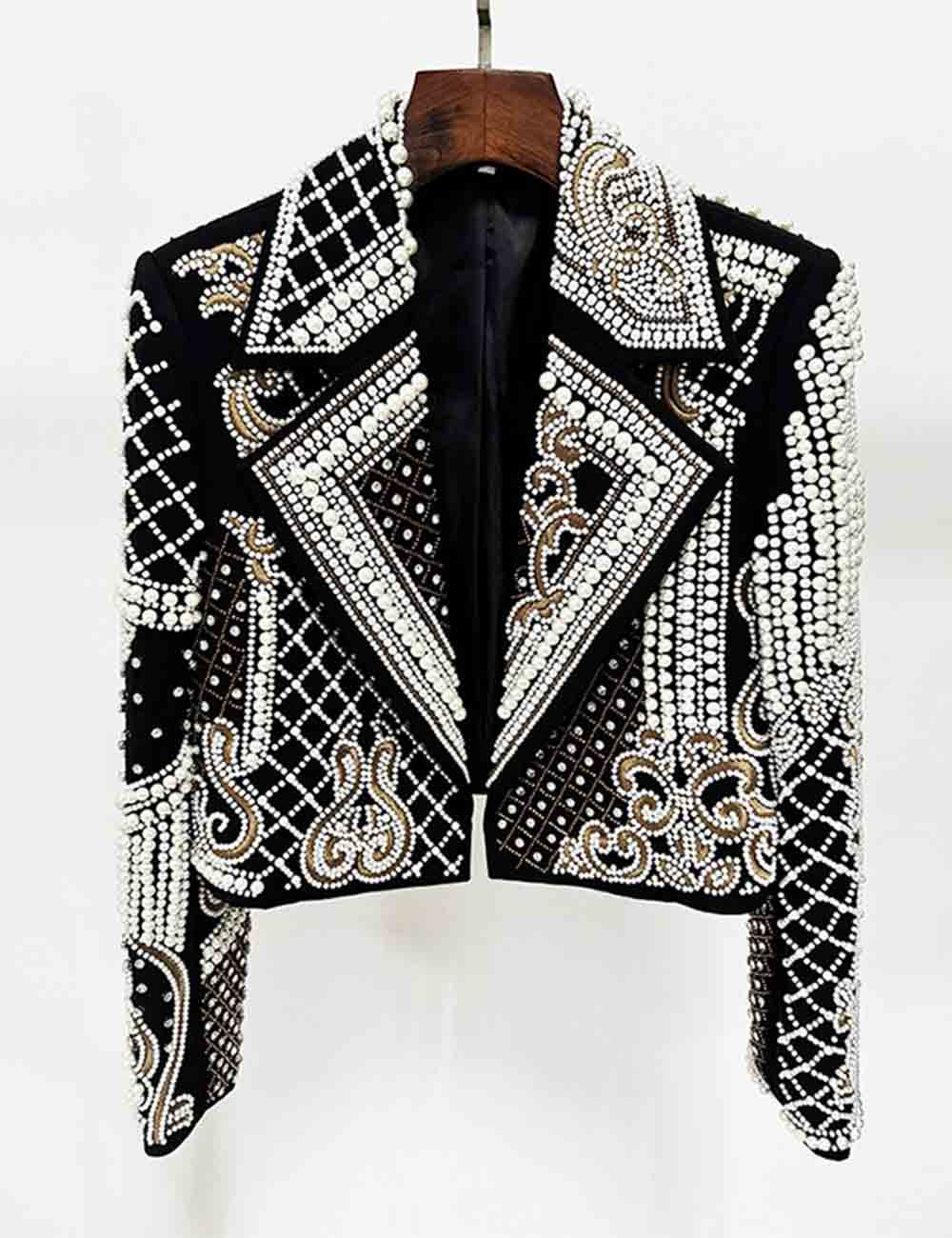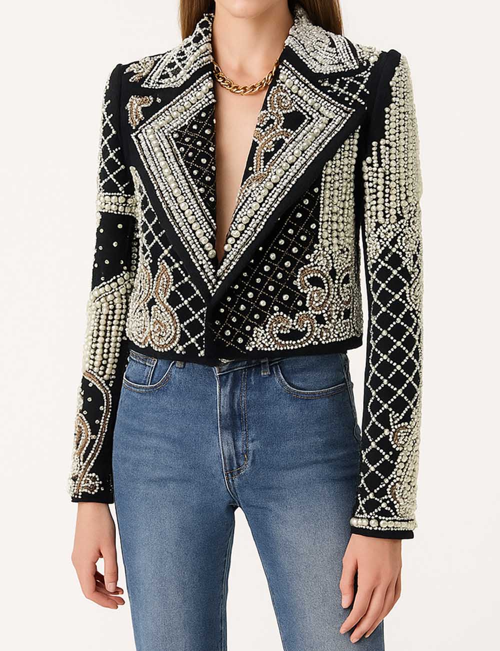 Ladies Embroidery Rhinestone Pearl Beading Cropped Blazer