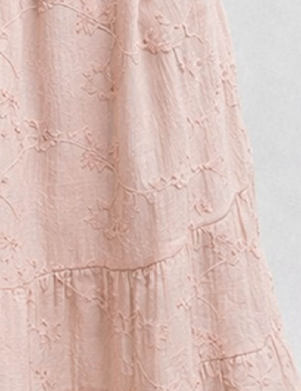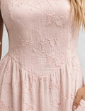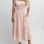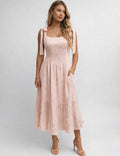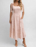 Ladies Embroidery Square Neck Tie Shoulder Strap Midi Dress