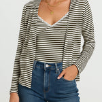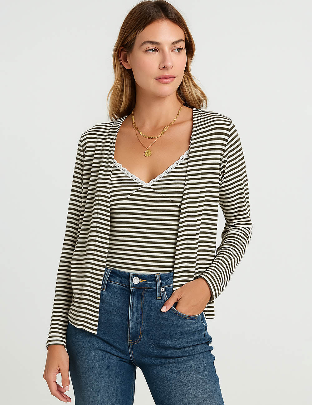 Ladies Everyday Color Block Striped Knit Cami & Cardigan 2PCS Set