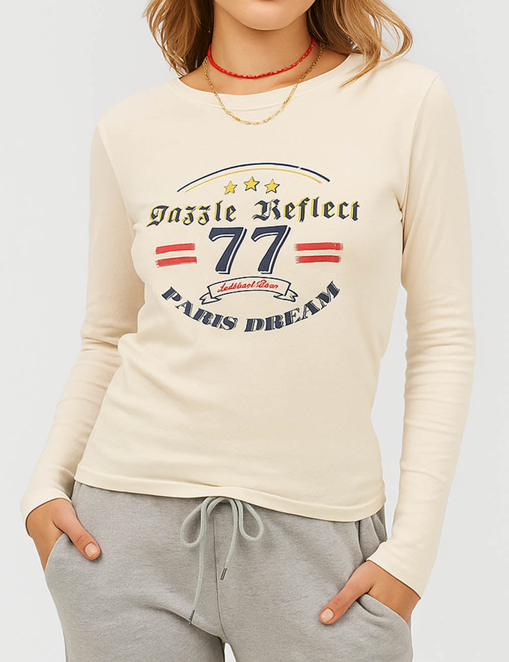 Ladies Everyday Pullover Top Text Print T-Shirt