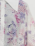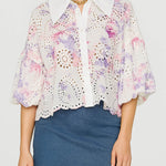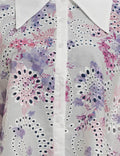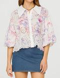 Ladies Eyelet Floral Print Short Sleeves Shirt JT5502