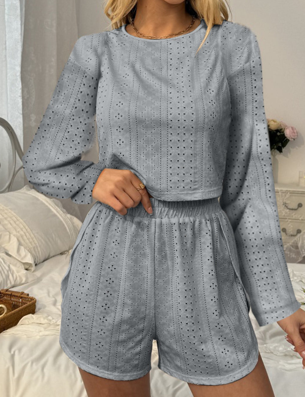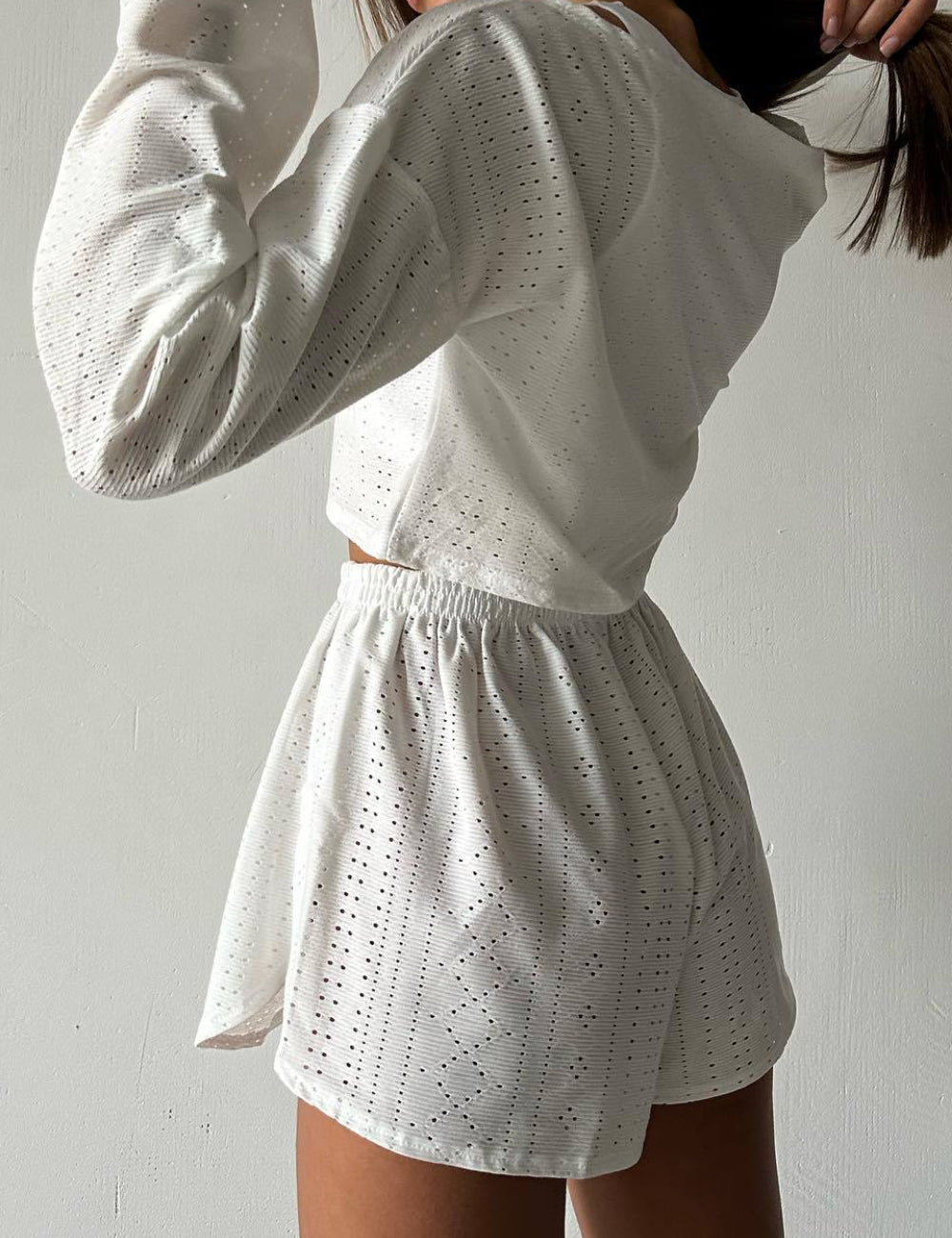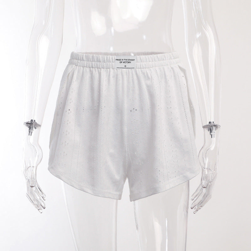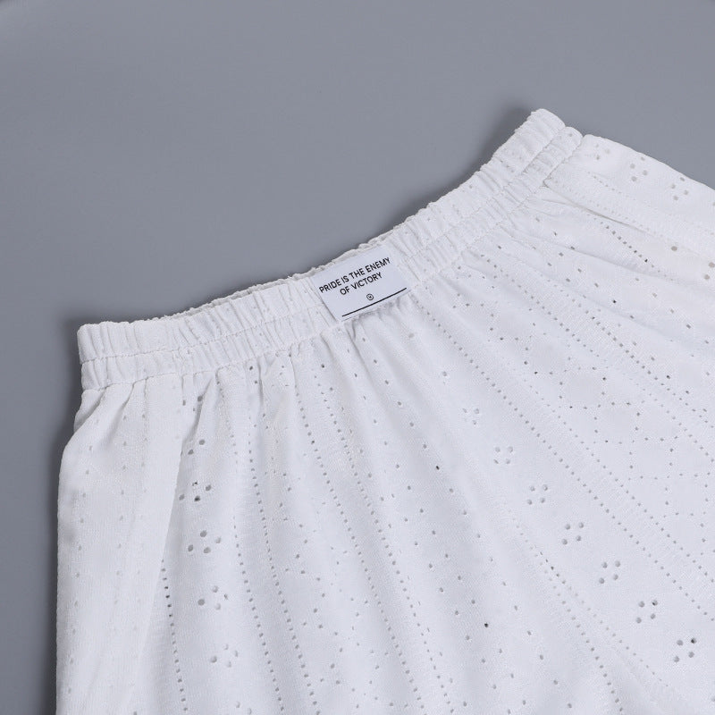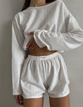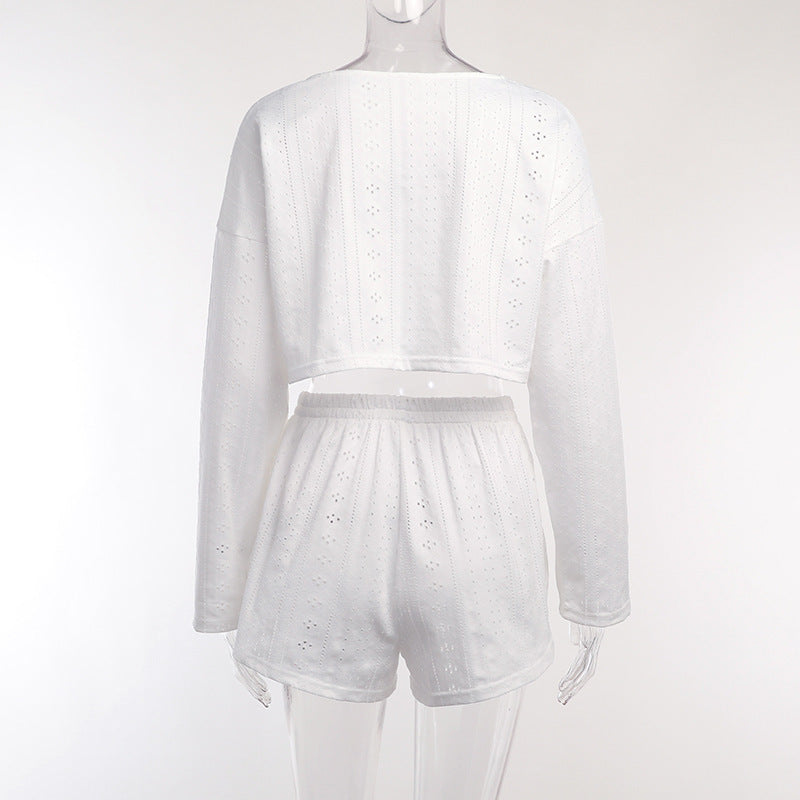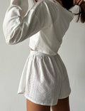 Ladies Eyelet Top Shorts 2pcs Lounge Wear Set SKST41192