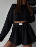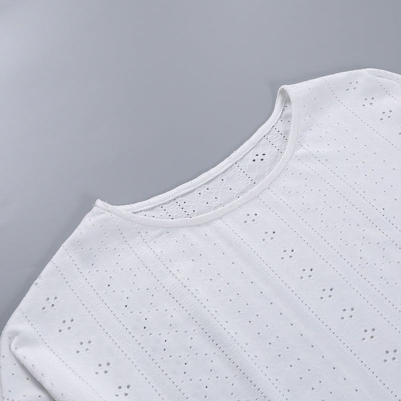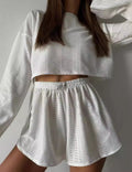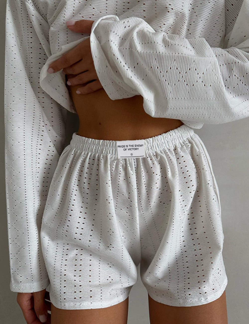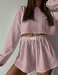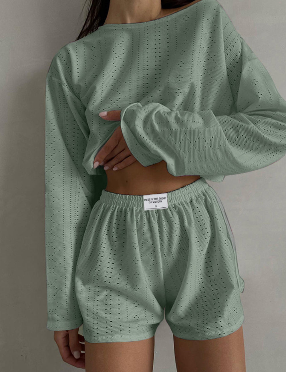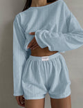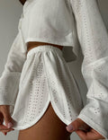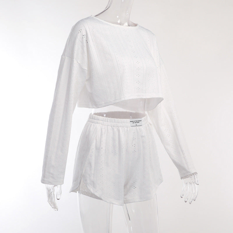 Ladies Eyelet Top Shorts 2pcs Lounge Wear Set SKST41192