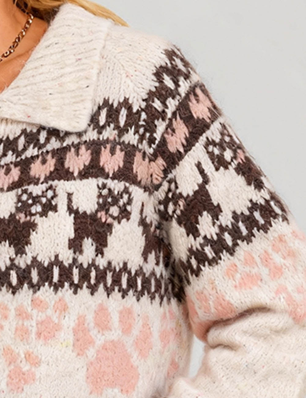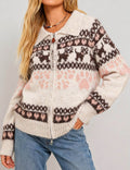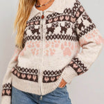 Ladies Fair Isle Pattern Zip-Up Sweater Cardigan