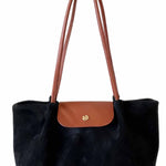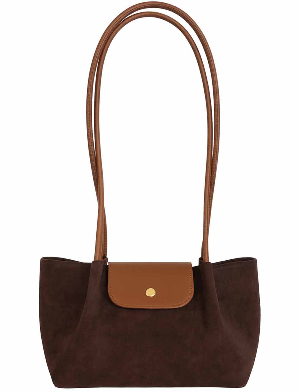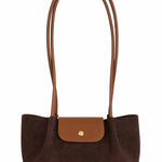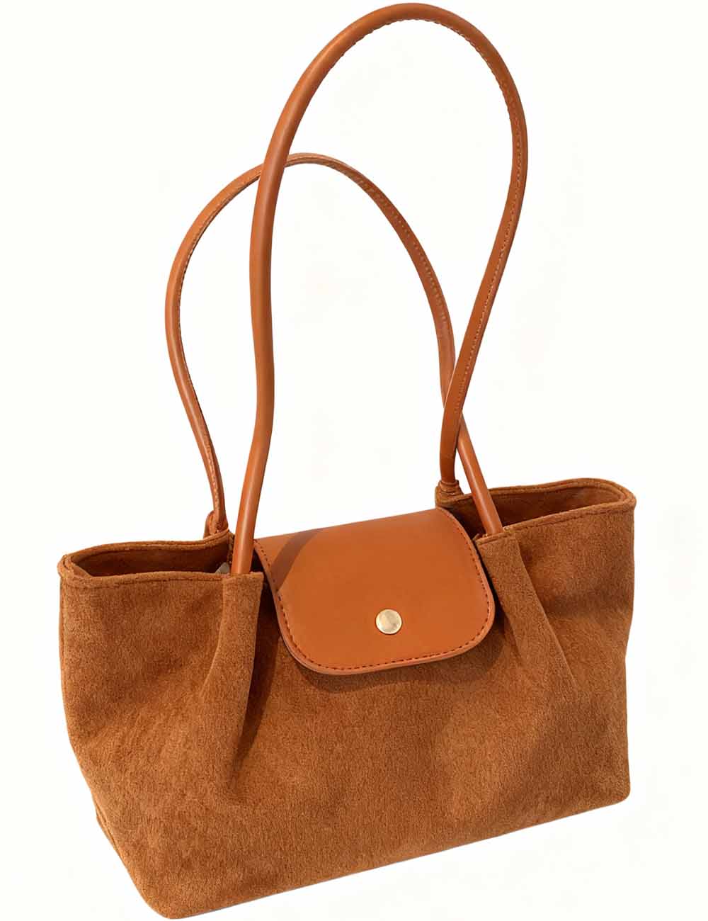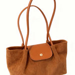 Ladies Fashion Suede Flap Button Shoulder Tote Bag