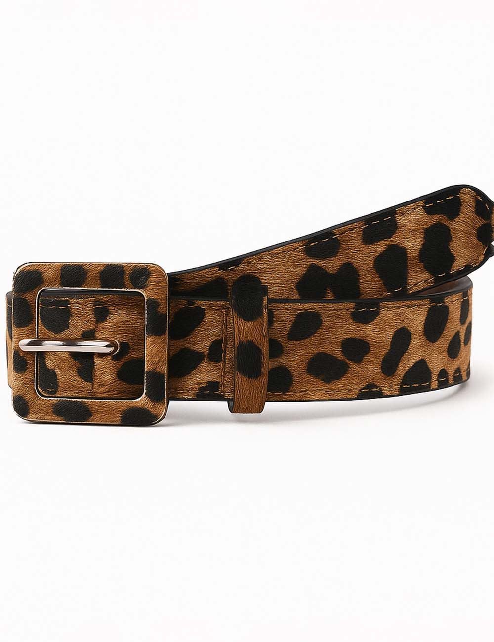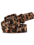 Ladies Faux Fur Leopard Metal Buckle Waist Belt