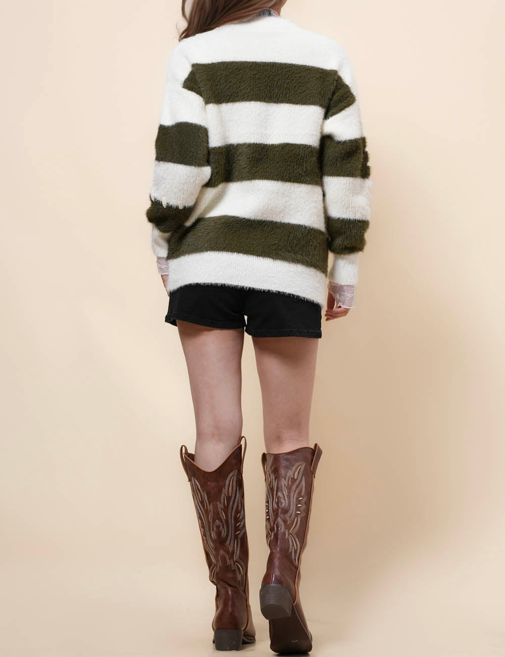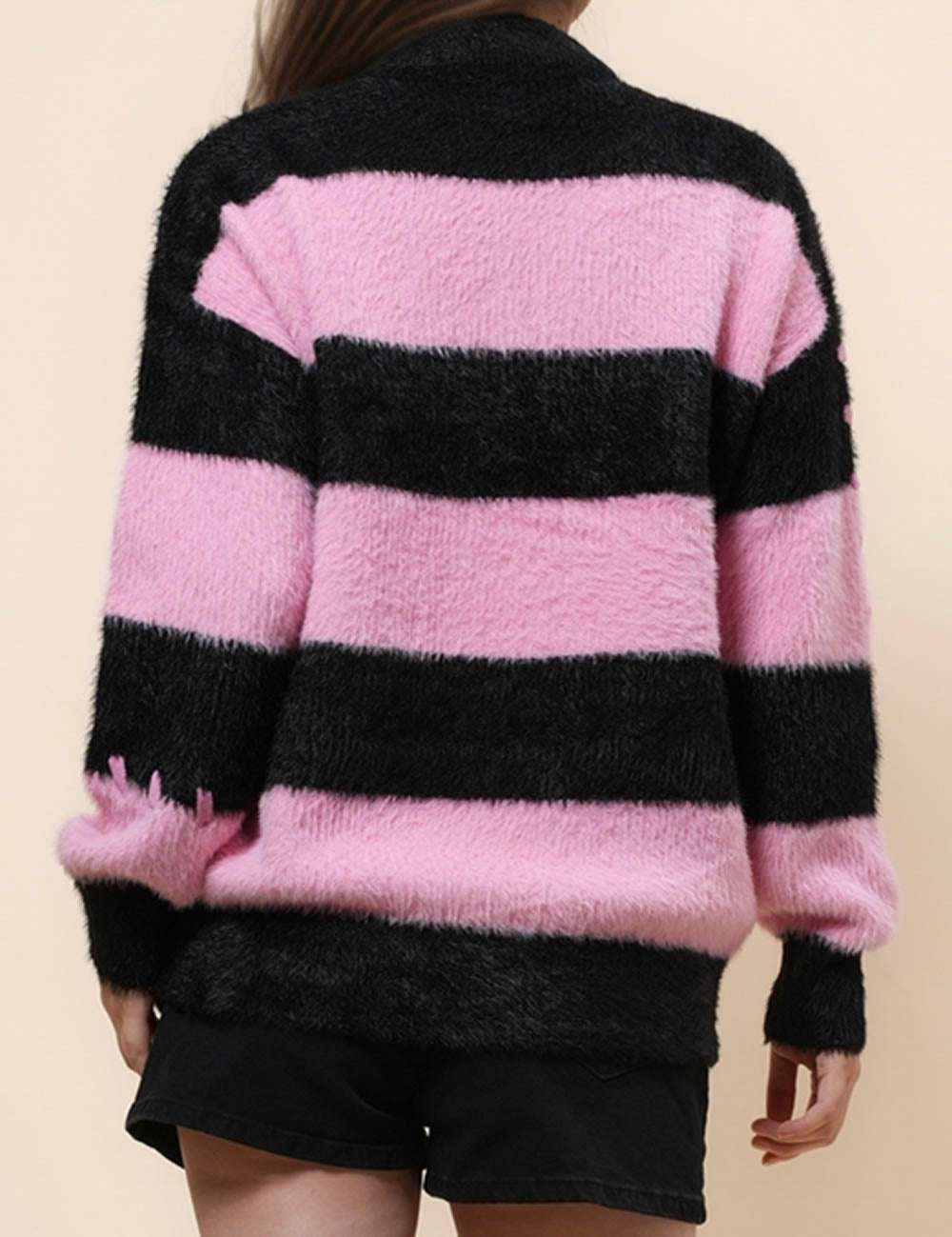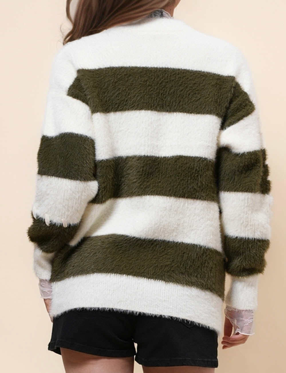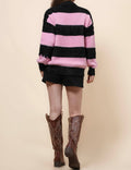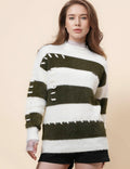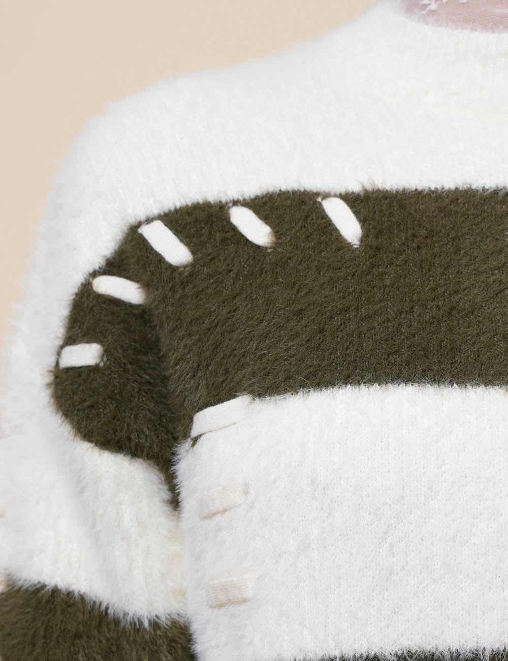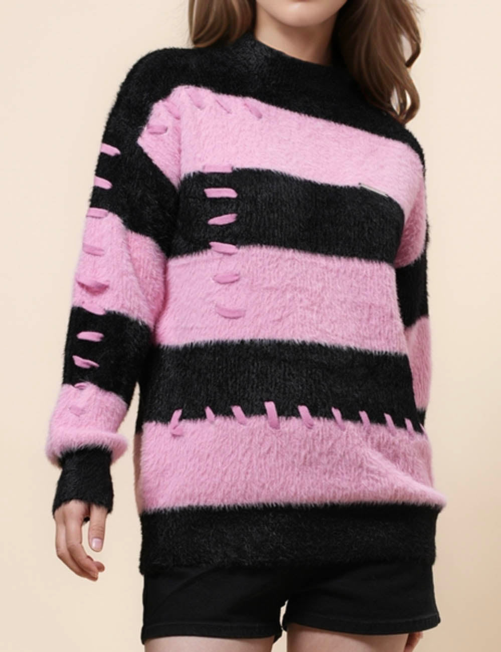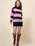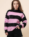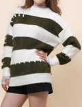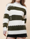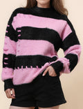 Ladies Faux Mink Color Block Striped Sweater SKT41056
