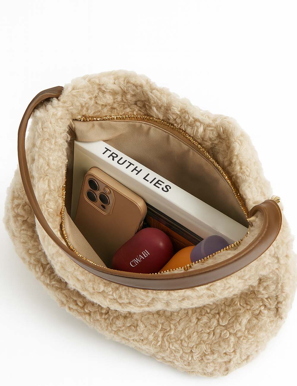 Ladies Faux Shearling Bag Large Capacity Shoulder Tote Bag