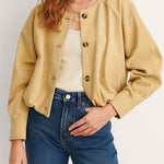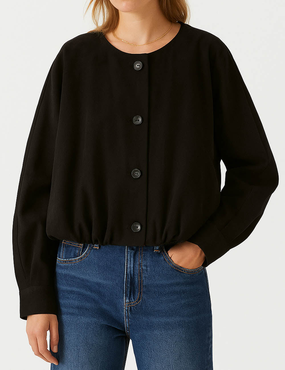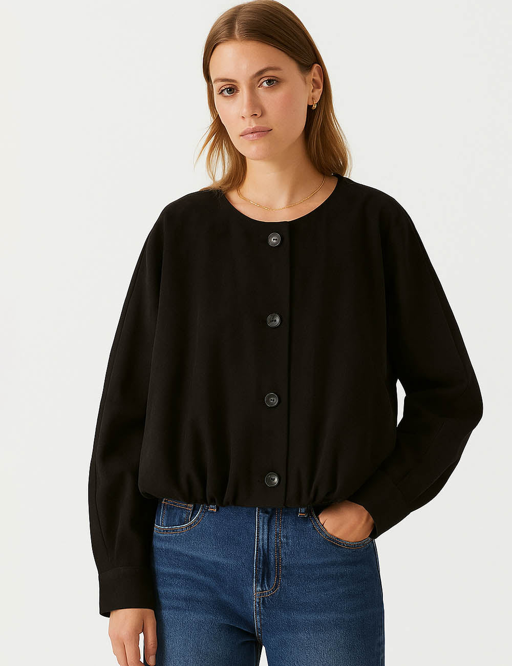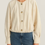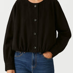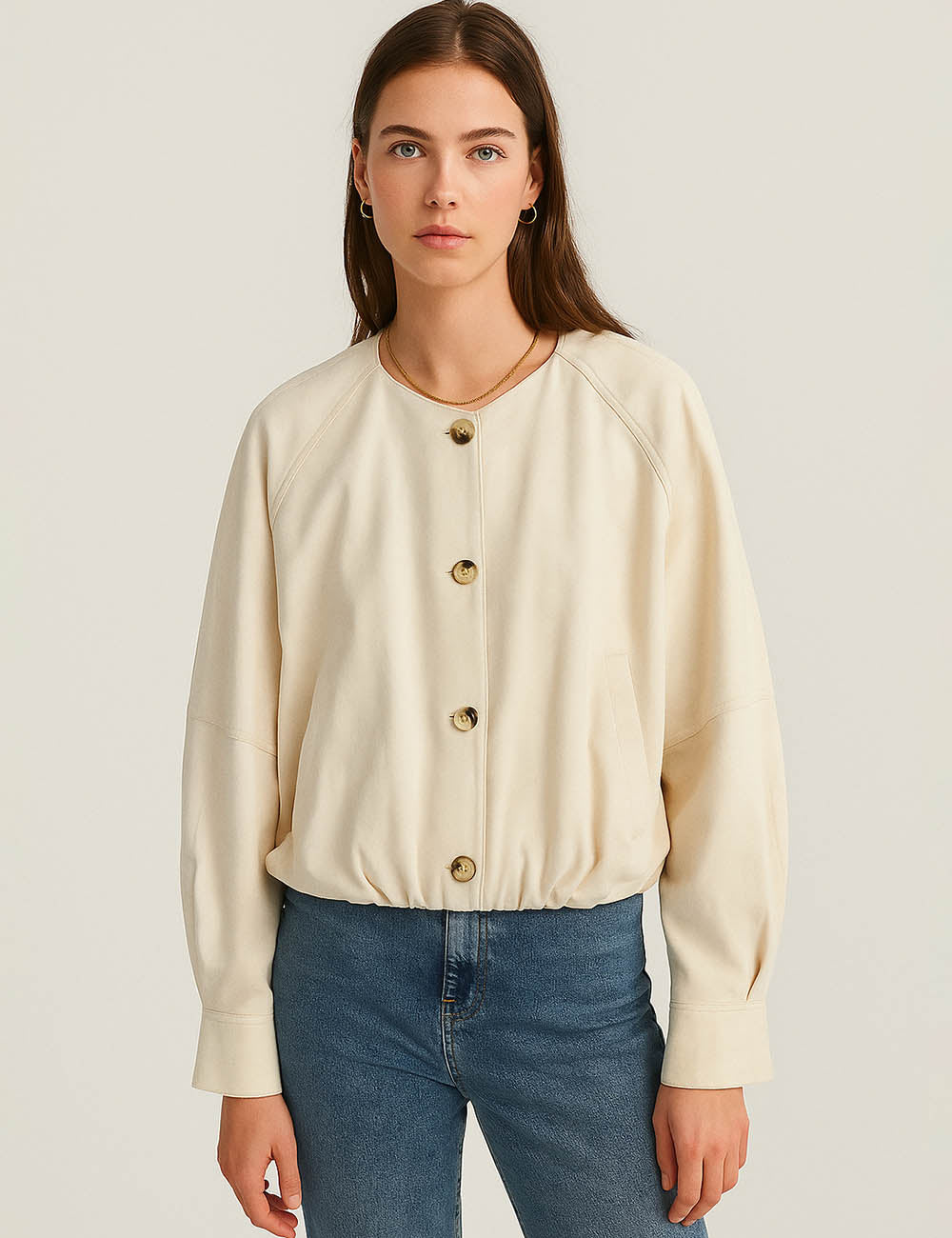 Ladies Faux Suede Button Front Round Neck Cropped Jacket