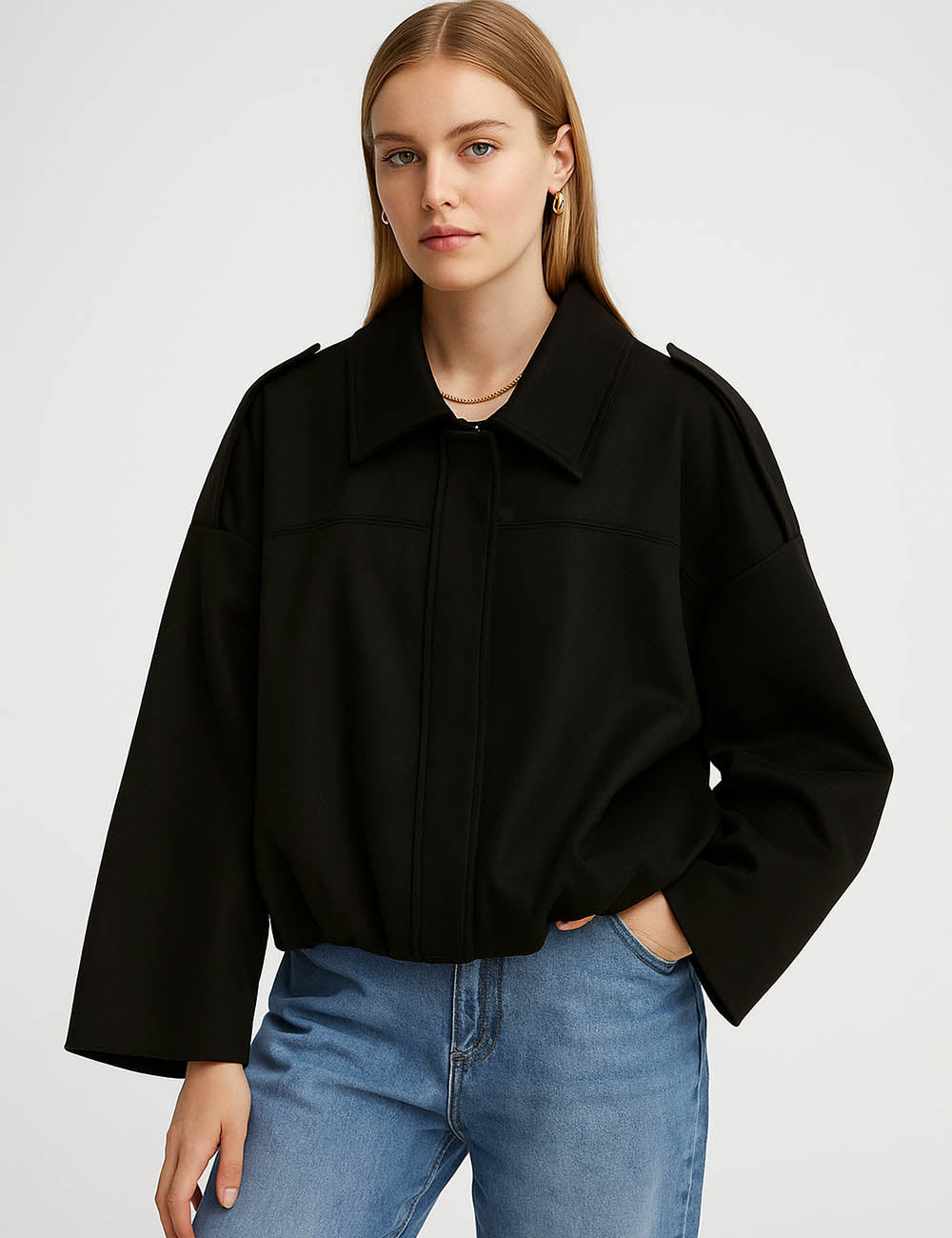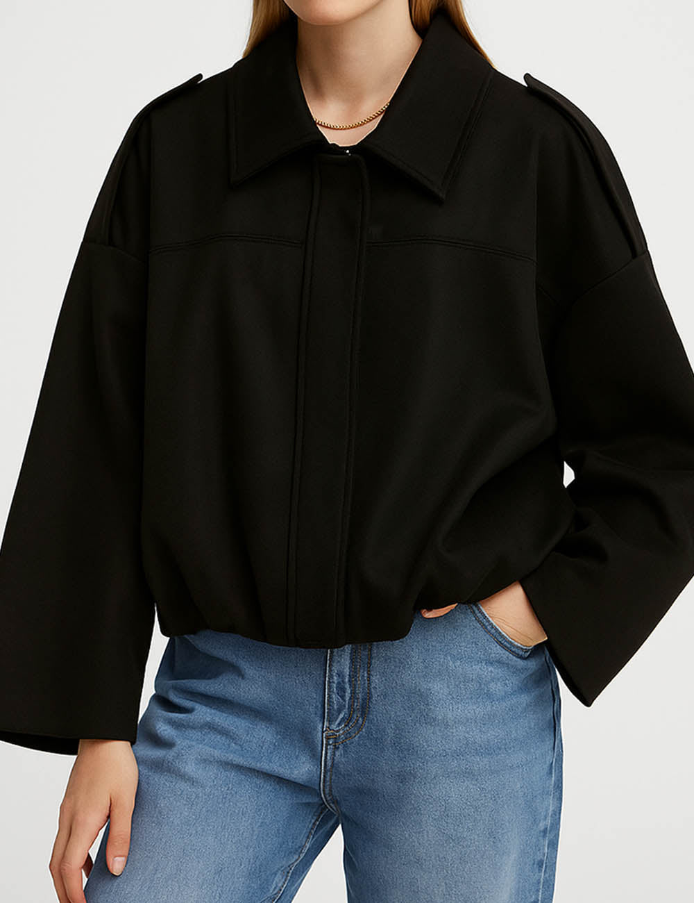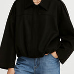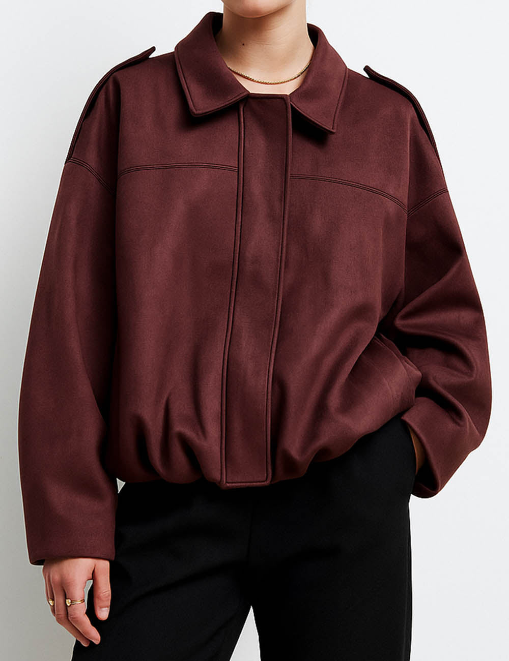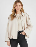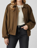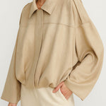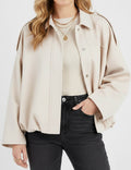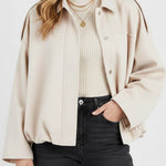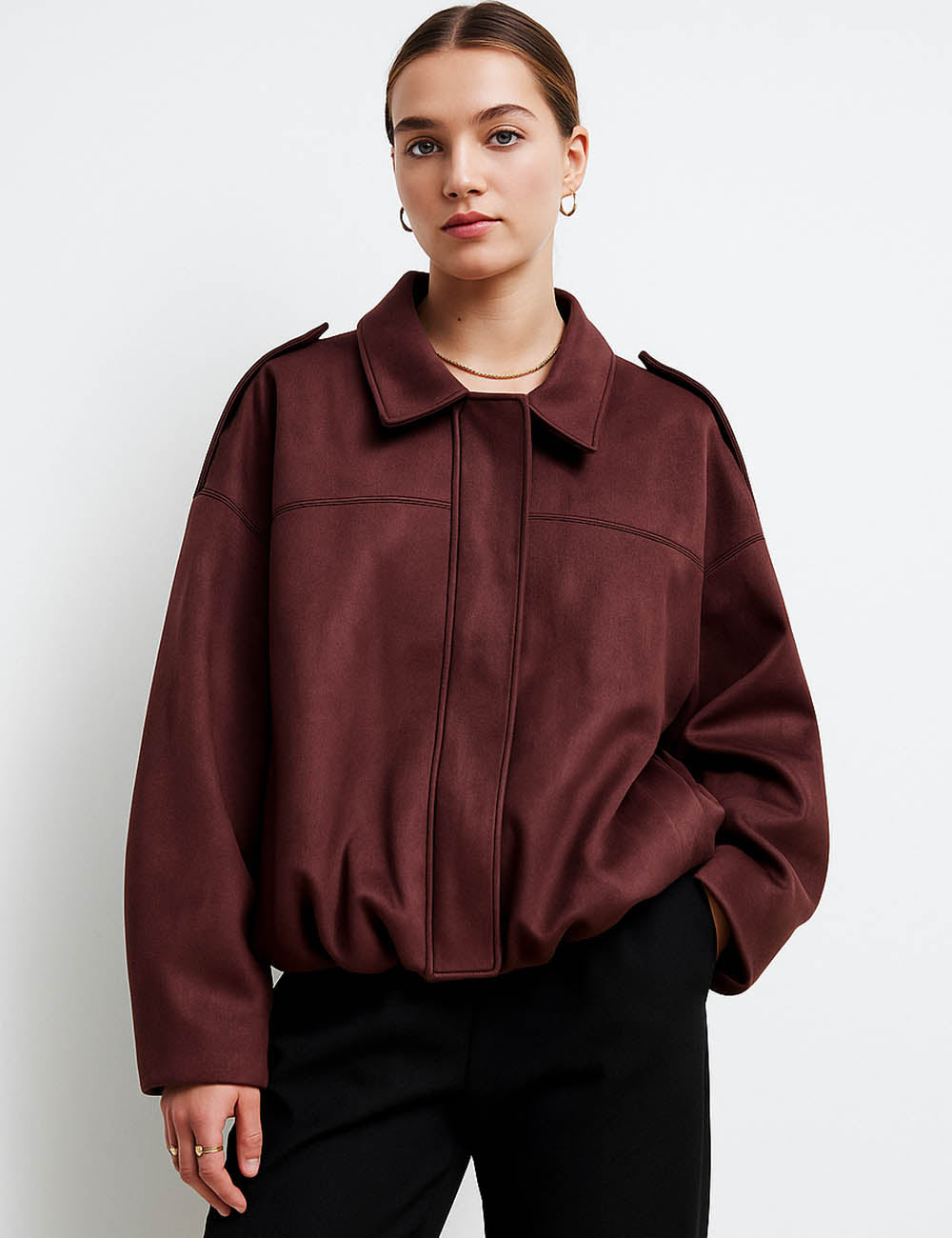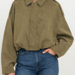 Ladies Faux Suede Shirt Collar Zip-Up Cropped Jacket