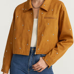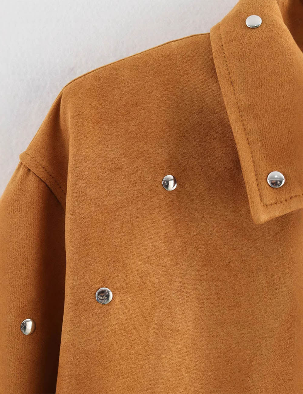 Ladies Faux Suede Studded Zipper Front Cropped Jacket