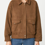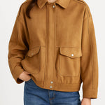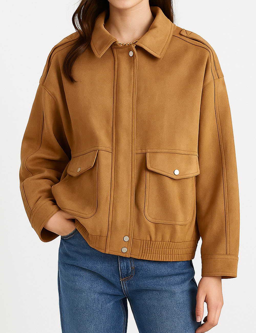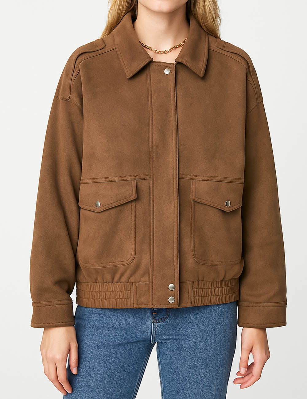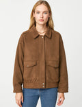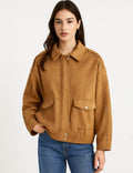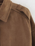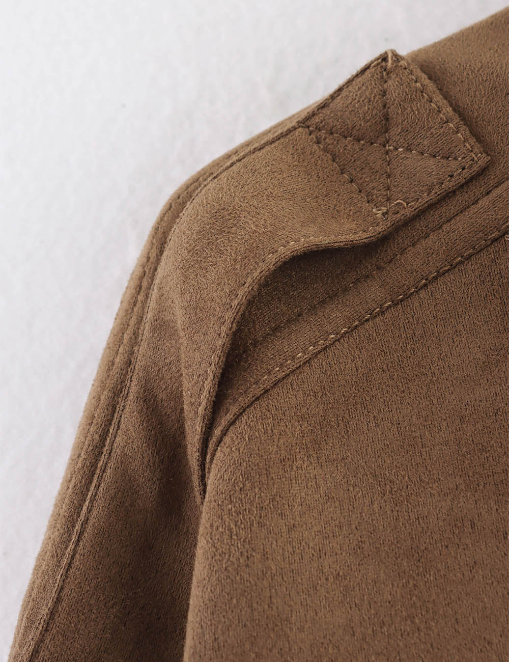 Ladies Faux Suede Turndown Collar Pocket Front Jacket