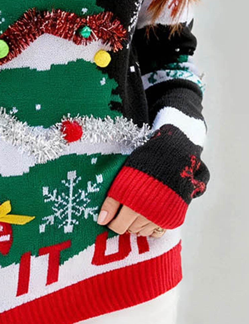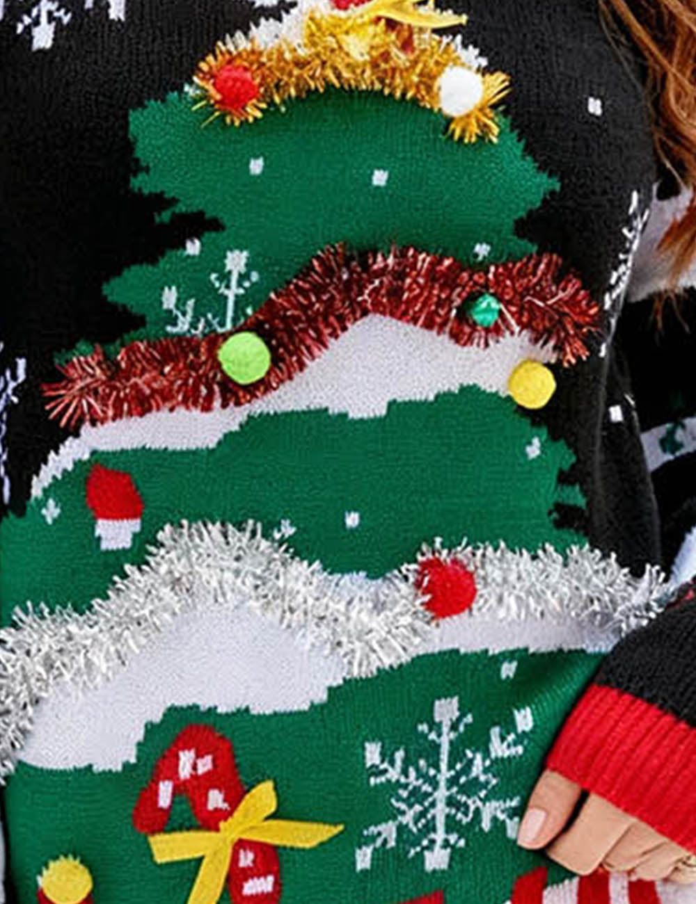 Ladies Festive Christmas Tree Graphic Holiday Knit Sweater
