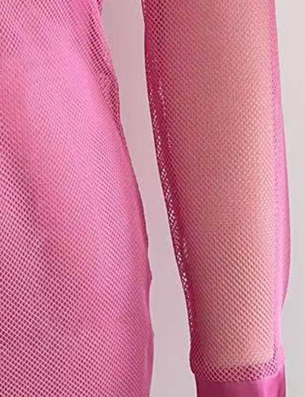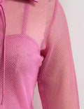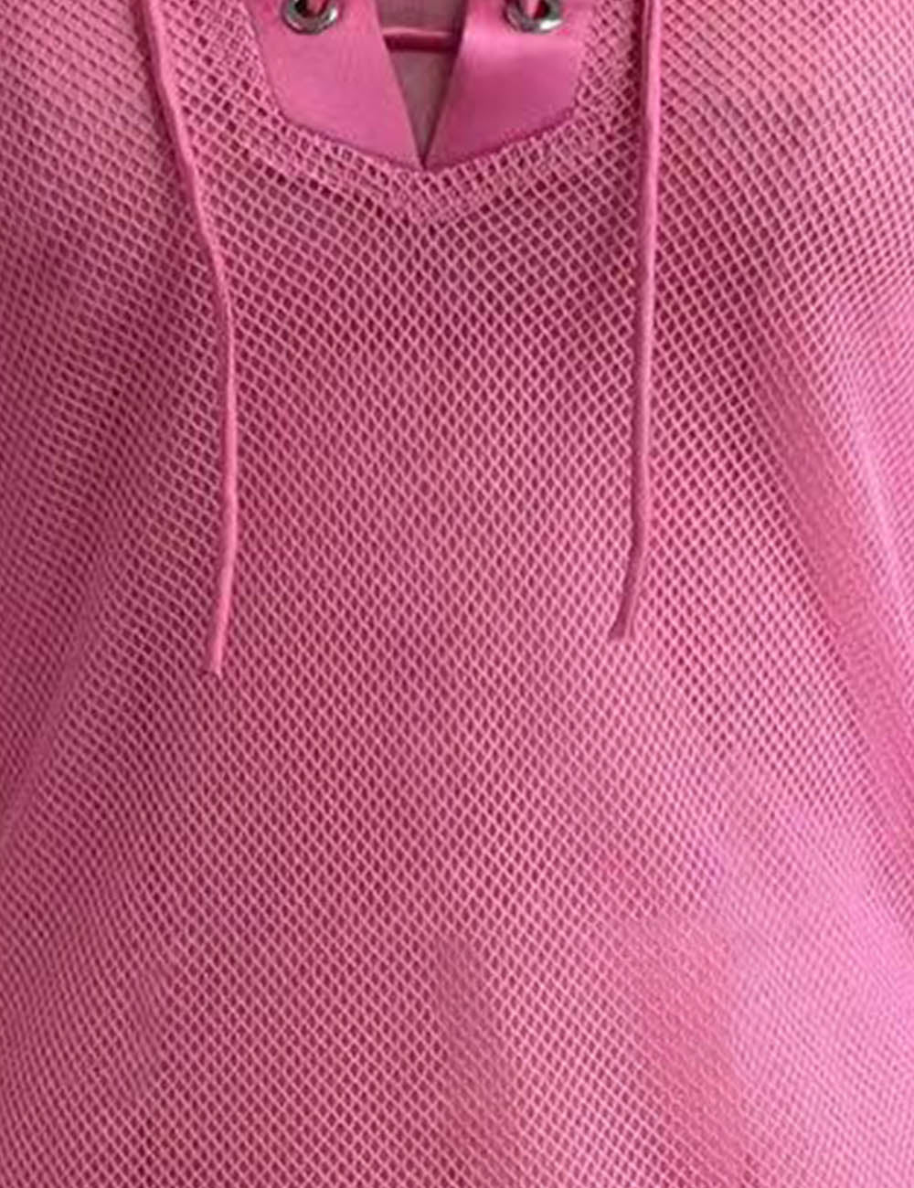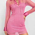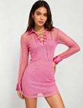 Ladies Fishnet Mesh Lace-Up Collar Bodycon Mini Dress